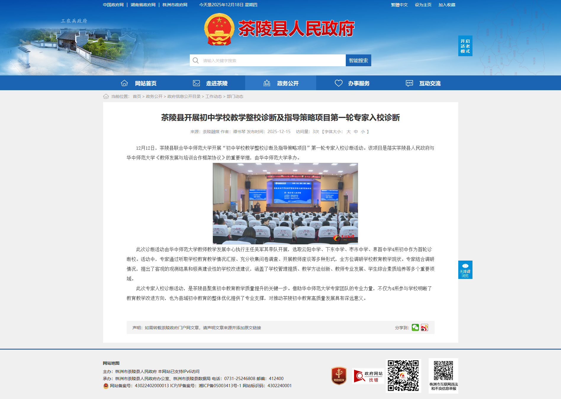 此次专家入校诊断活动,是茶陵县聚焦初中教育教学质量提升的关键一步。借助华中师范大学专家团队的专业力量,不仅为4所参与学校明晰了教育教学改进方向,也为县域初中教育的整体优化提供了专业支撑,对推动茶陵初中教育高质量发展具有深远意义。