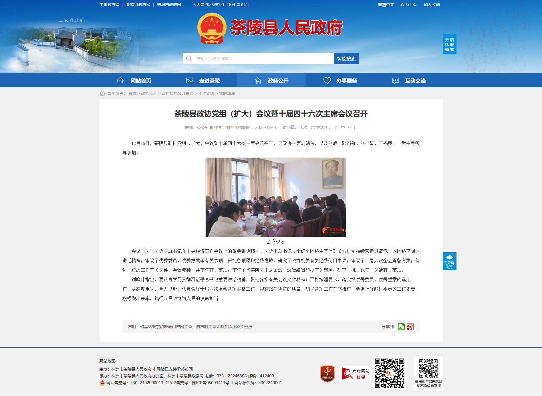 12月15日,茶陵县政协党组(扩大)会议暨十届四十六次主席会议召开,县政协主席刘晓伟,以及刘峥、郭渐雄、刘小琴、王福庚、卞武宗等领导参加。