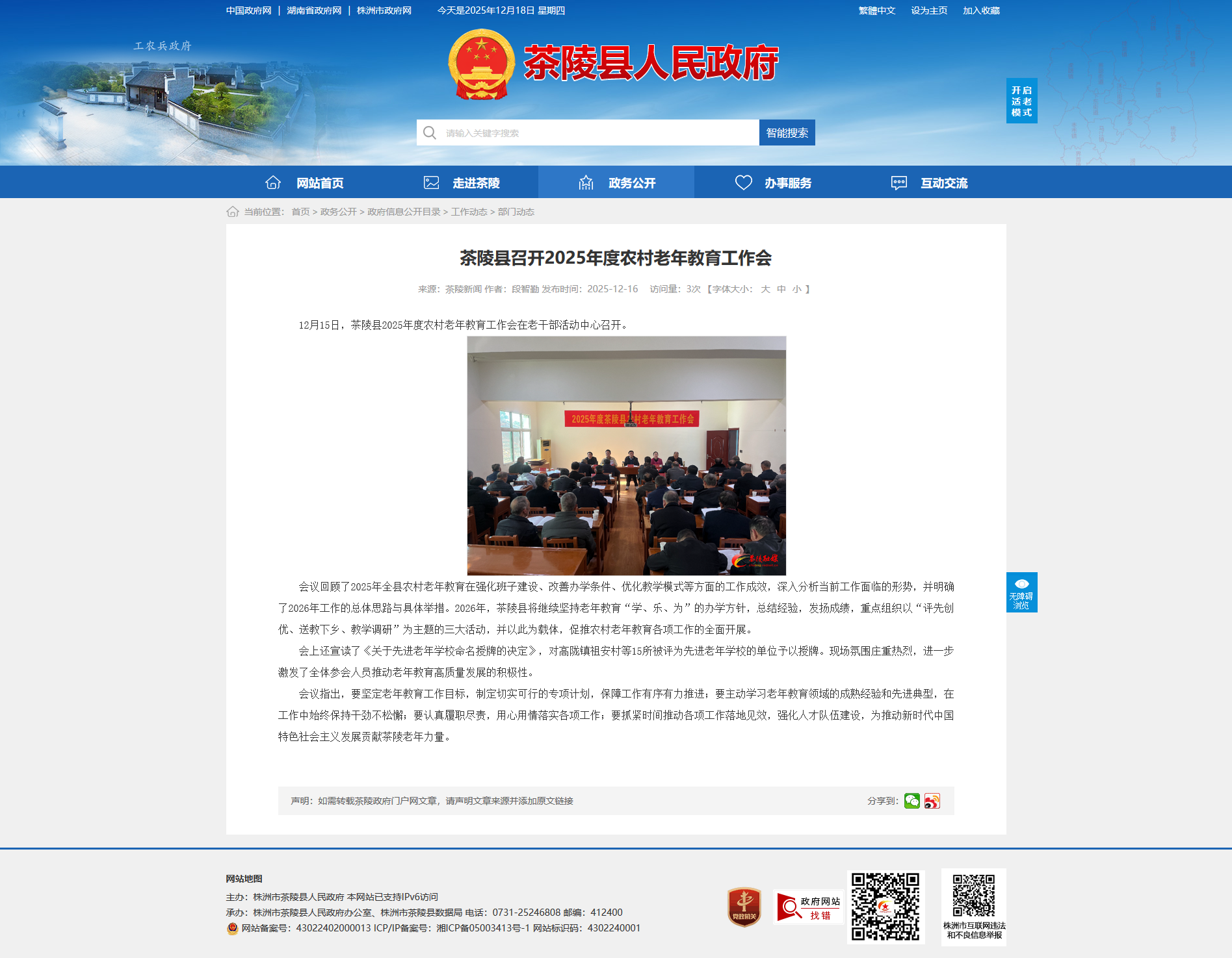 12月15日,茶陵县2025年度农村老年教育工作会在老干部活动中心召开。