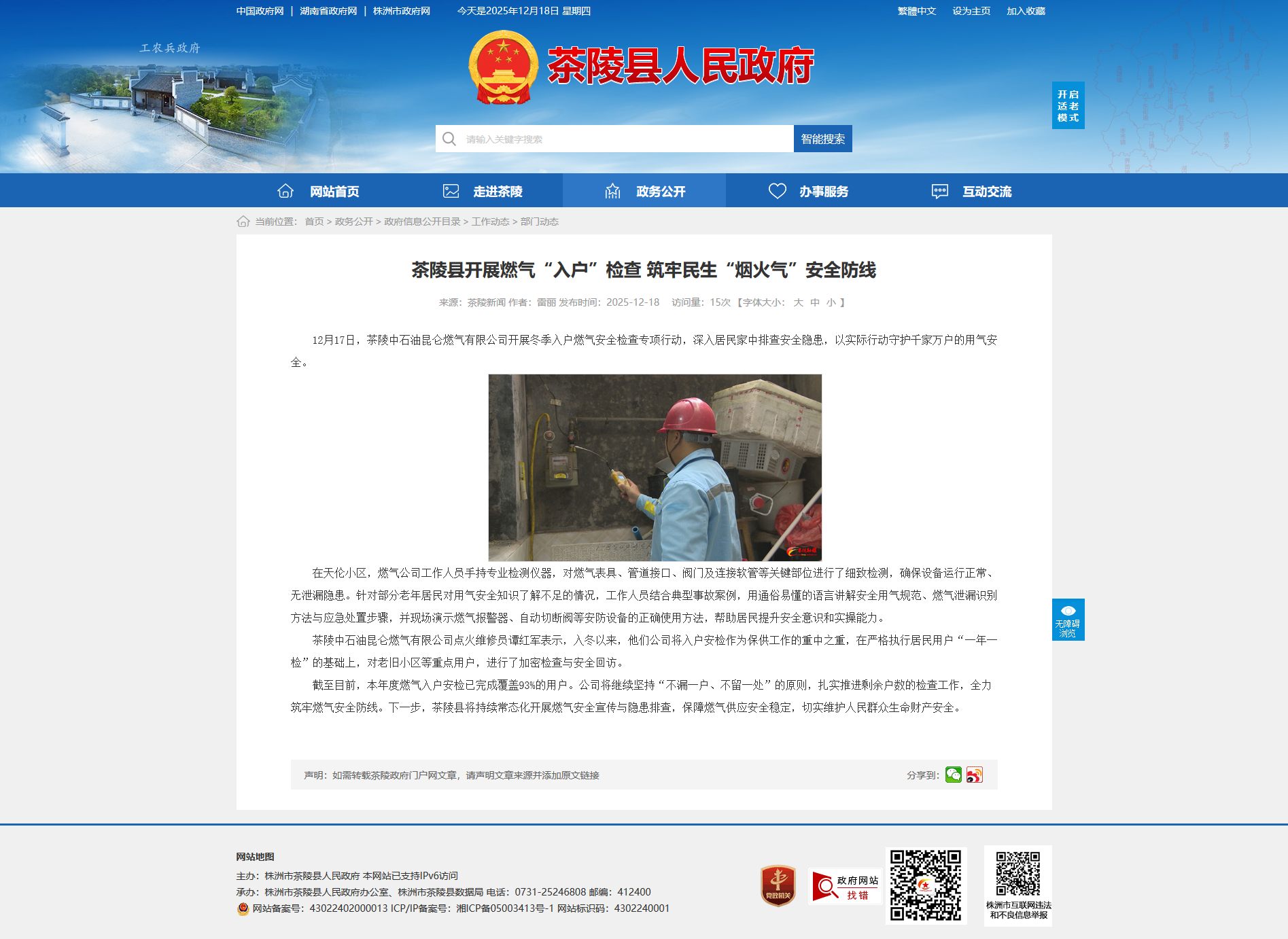 截至目前,本年度燃气入户安检已完成覆盖93%的用户。公司将继续坚持“不漏一户、不留一处”的原则,扎实推进剩余户数的检查工作,全力筑牢燃气安全防线。下一步,茶陵县将持续常态化开展燃气安全宣传与隐患排查,保障燃气供应安全稳定,切实维护人民群众生命财产安全。
