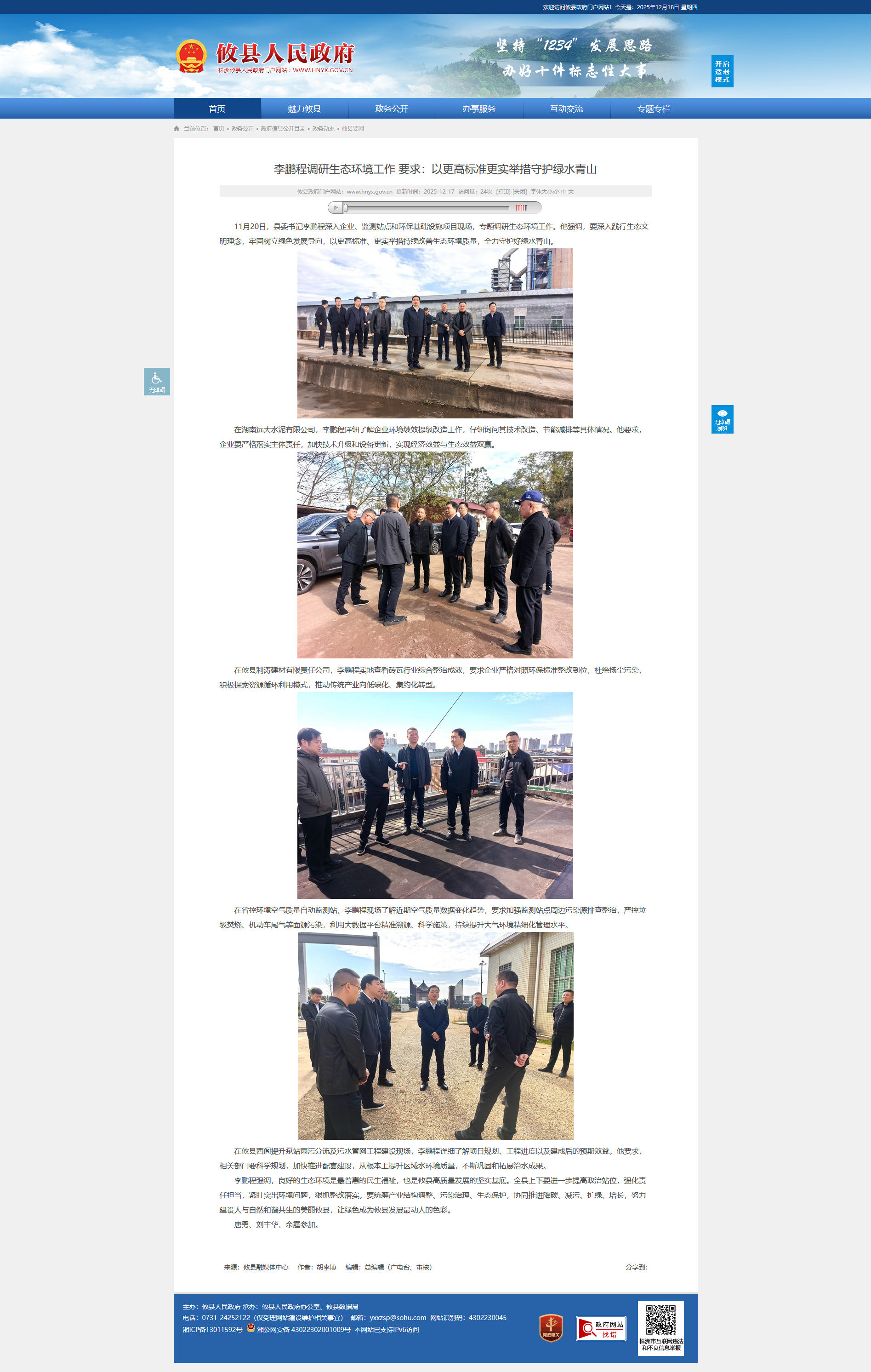 李鹏程强调,良好的生态环境是最普惠的民生福祉,也是攸县高质量发展的坚实基底。全县上下要进一步提高政治站位,强化责任担当,紧盯突出环境问题,狠抓整改落实。要统筹产业结构调整、污染治理、生态保护,协同推进降碳、减污、扩绿、增长,努力建设人与自然和谐共生的美丽攸县,让绿色成为攸县发展最动人的色彩。