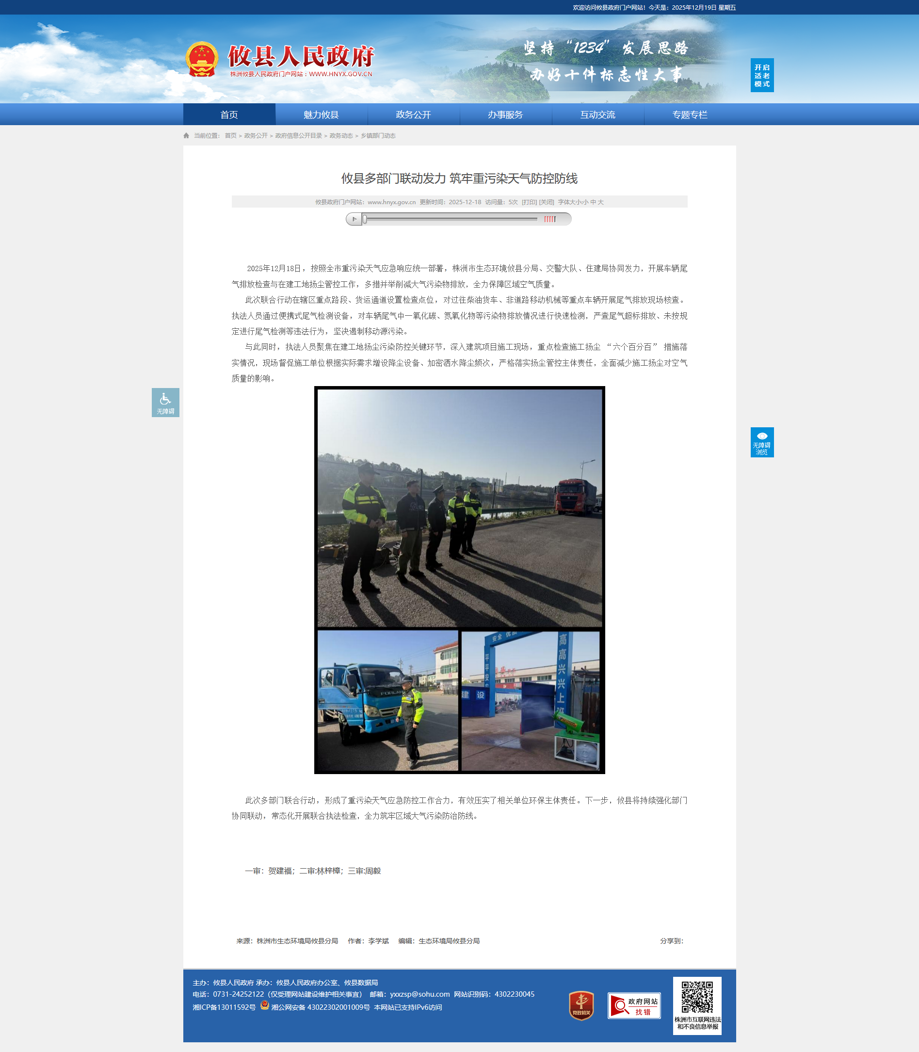 2025年12月18日,按照全市重污染天气应急响应统一部署,株洲市生态环境攸县分局、交警大队、住建局协同发力,开展车辆尾气排放检查与在建工地扬尘管控工作,多措并举削减大气污染物排放,全力保障区域空气质量。