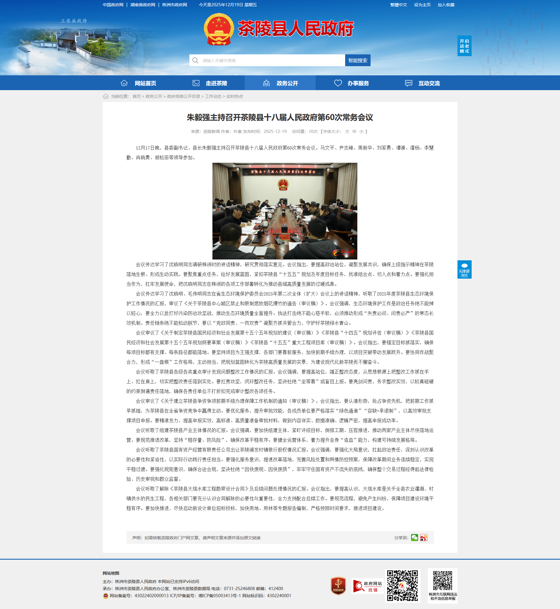 12月17日晚,县委副书记、县长朱毅强主持召开茶陵县十八届人民政府第60次常务会议。马文平、尹志峰、周新华、刘军勇、谭漪、潘杨、李慧勤、肖晓勇、胡松田等领导参加。