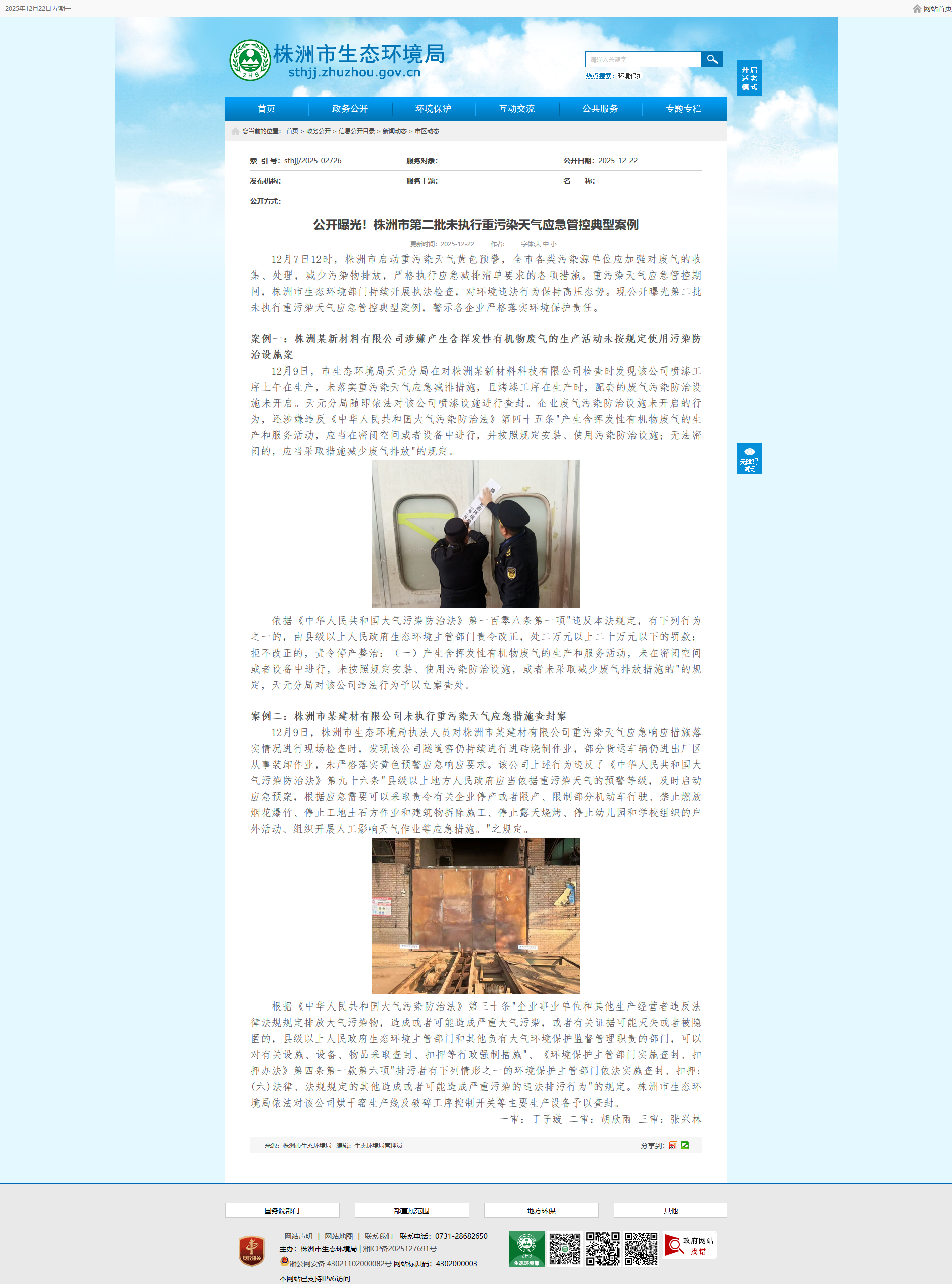 案例二:株洲市某建材有限公司未执行重污染天气应急措施查封案