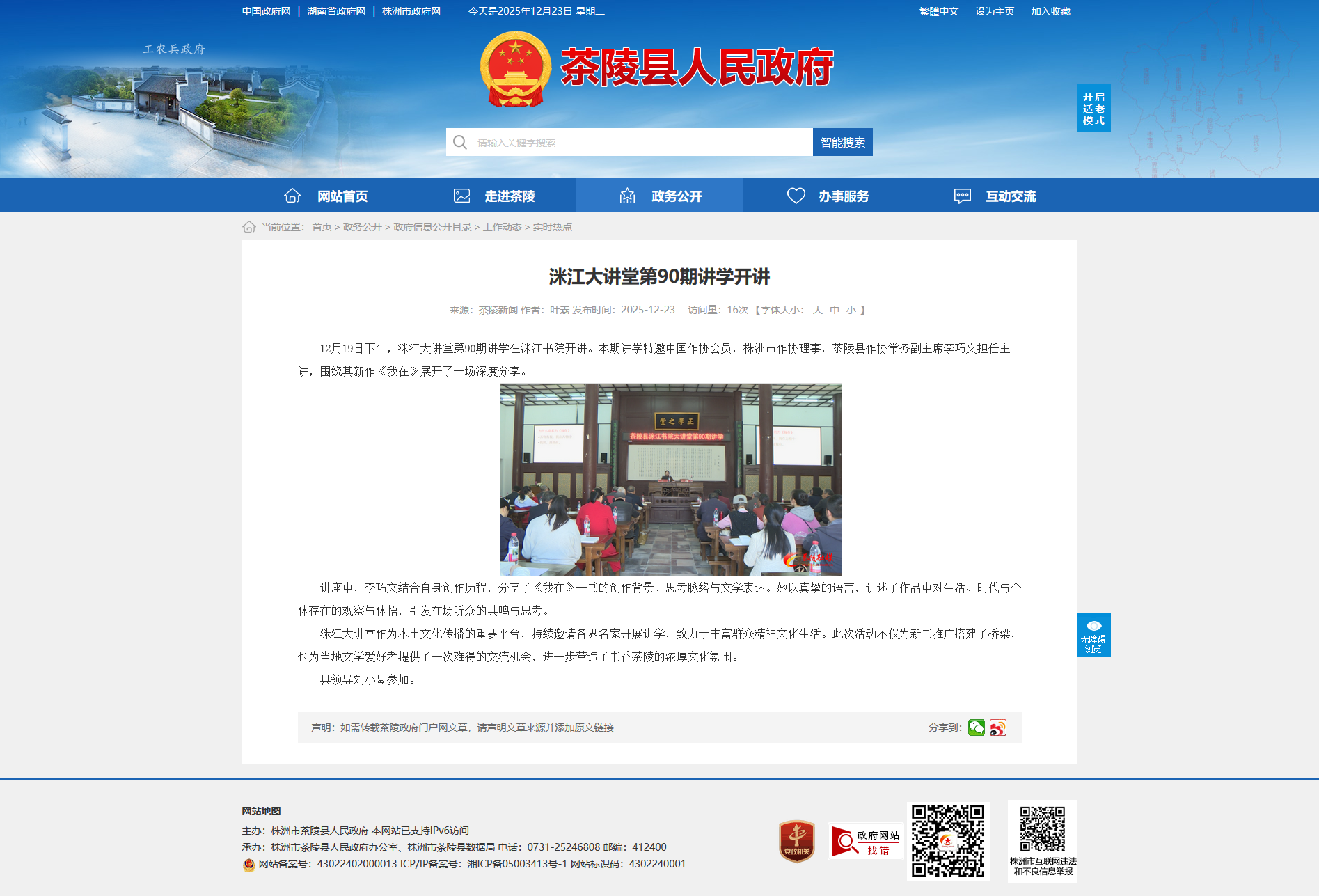 洣江大讲堂作为本土文化传播的重要平台,持续邀请各界名家开展讲学,致力于丰富群众精神文化生活。此次活动不仅为新书推广搭建了桥梁,也为当地文学爱好者提供了一次难得的交流机会,进一步营造了书香茶陵的浓厚文化氛围。