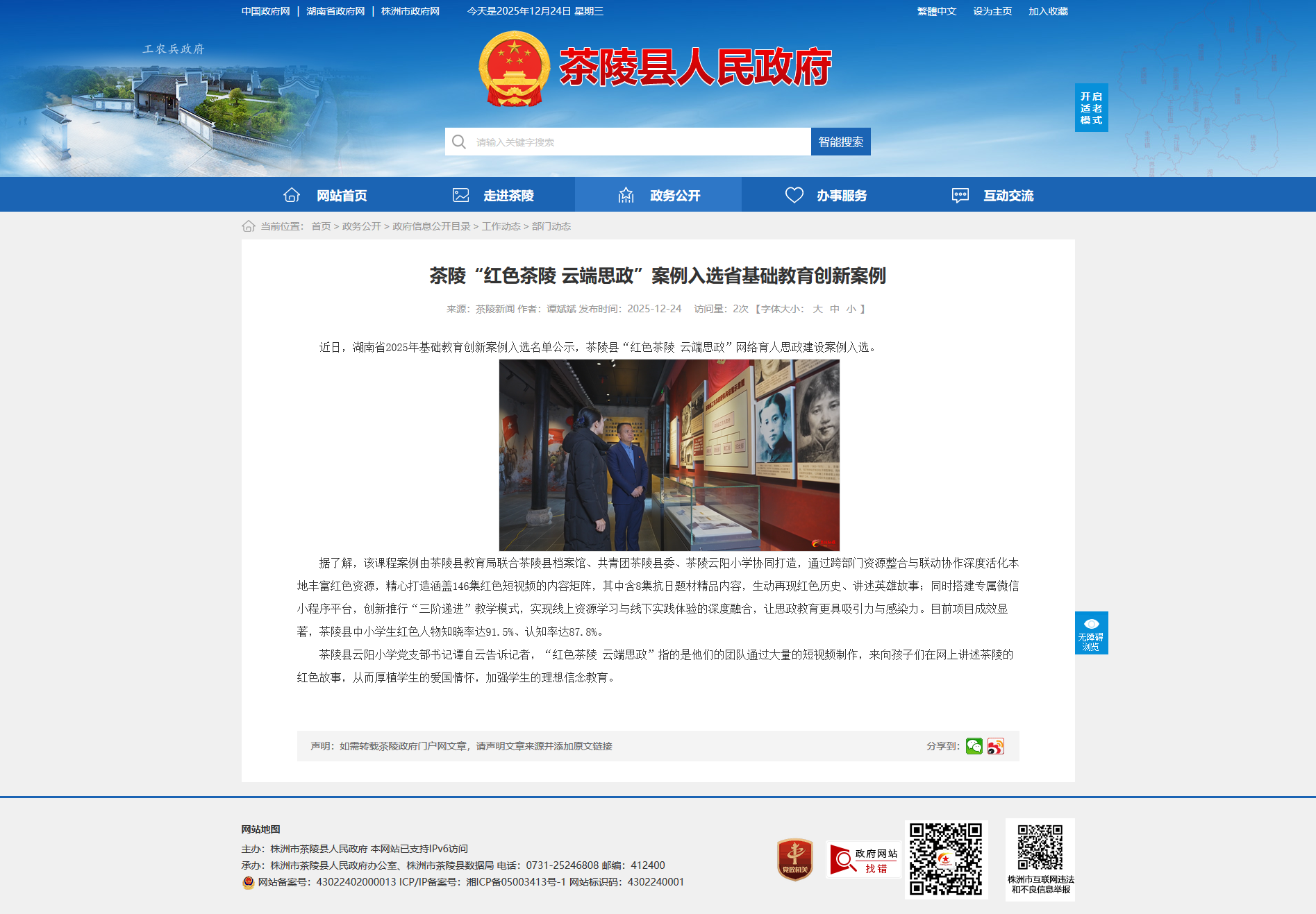 近日,湖南省2025年基础教育创新案例入选名单公示,茶陵县“红色茶陵 云端思政”网络育人思政建设案例入选。