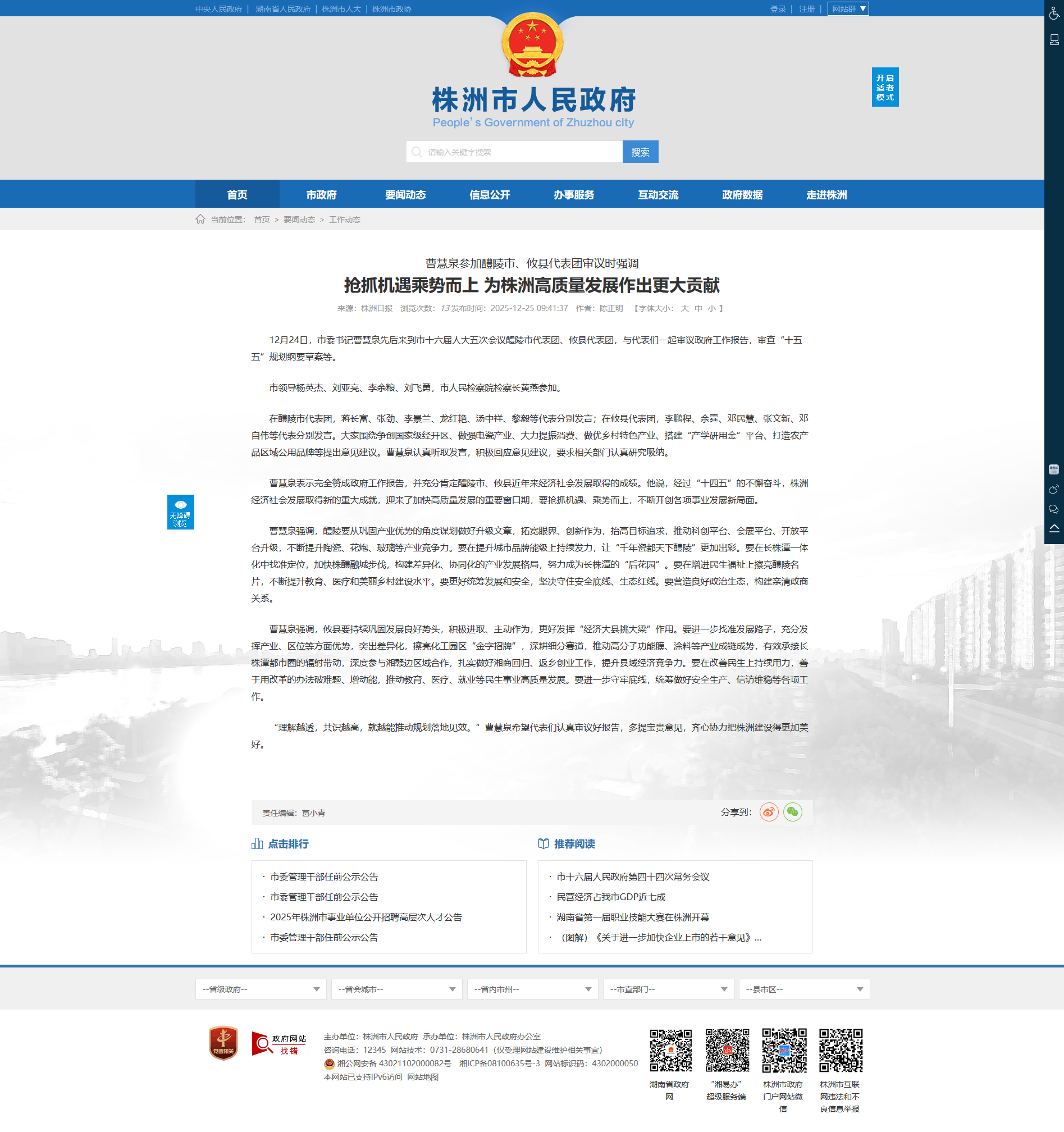 曹慧泉表示完全赞成政府工作报告,并充分肯定醴陵市、攸县近年来经济社会发展取得的成绩。他说,经过“十四五”的不懈奋斗,株洲经济社会发展取得新的重大成就,迎来了加快高质量发展的重要窗口期,要抢抓机遇、乘势而上,不断开创各项事业发展新局面。