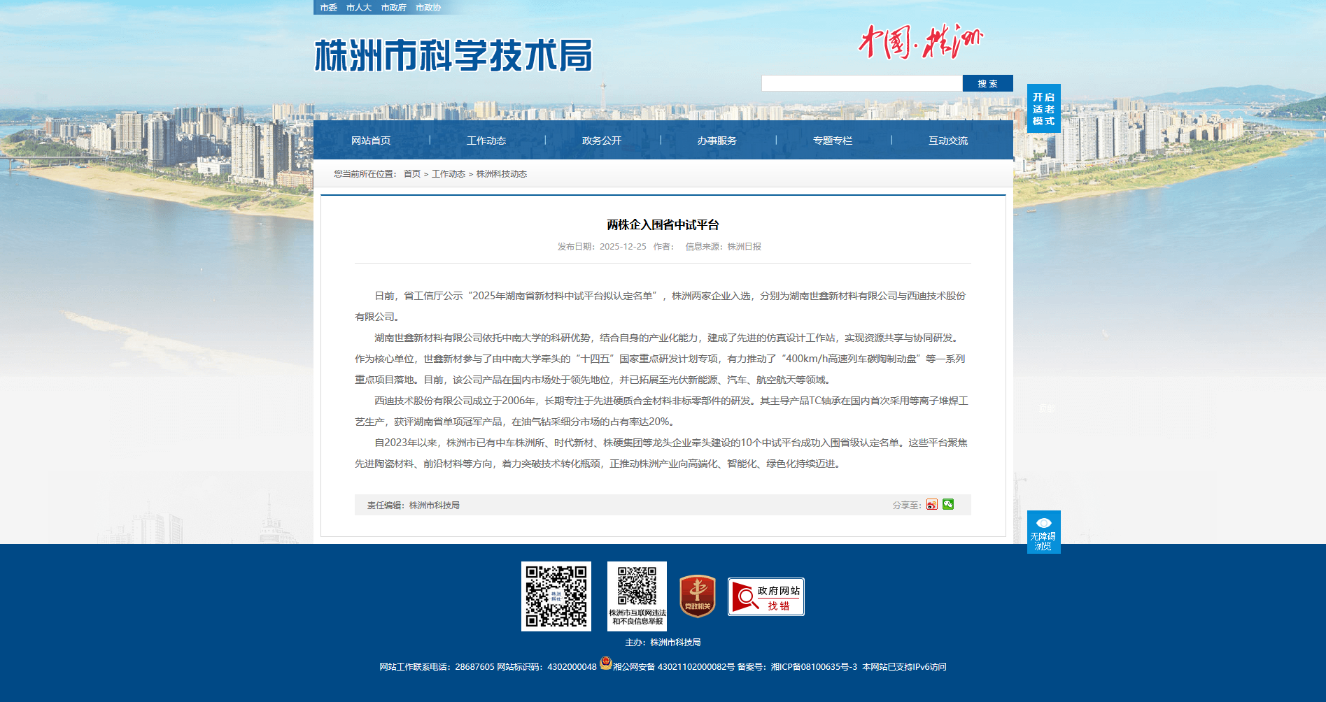 日前,省工信厅公示“2025年湖南省新材料中试平台拟认定名单”,株洲两家企业入选,分别为湖南世鑫新材料有限公司与西迪技术股份有限公司。