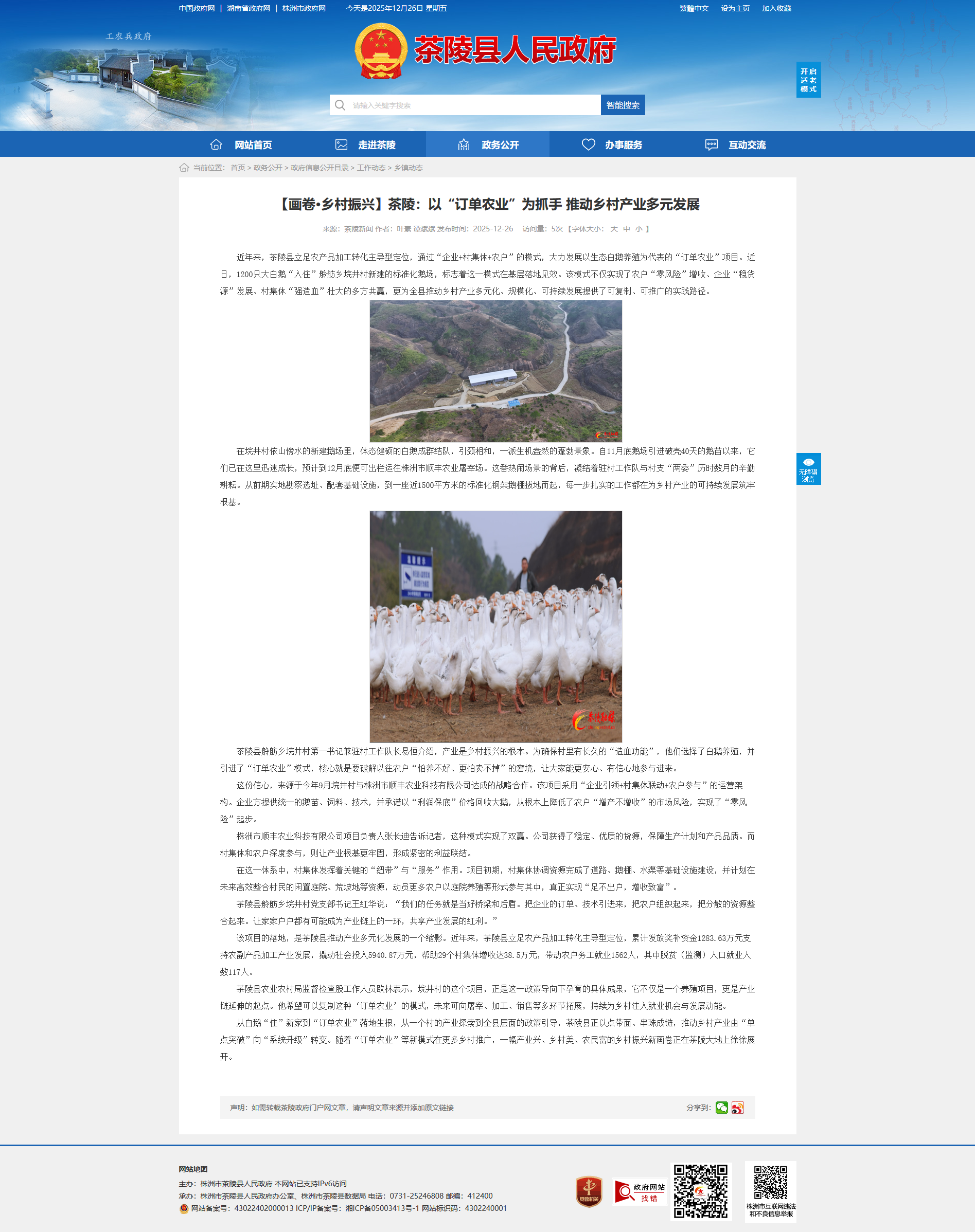 从白鹅“住”新家到“订单农业”落地生根,从一个村的产业探索到全县层面的政策引导,茶陵县正以点带面、串珠成链,推动乡村产业由“单点突破”向“系统升级”转变。随着“订单农业”等新模式在更多乡村推广,一幅产业兴、乡村美、农民富的乡村振兴新画卷正在茶陵大地上徐徐展开。