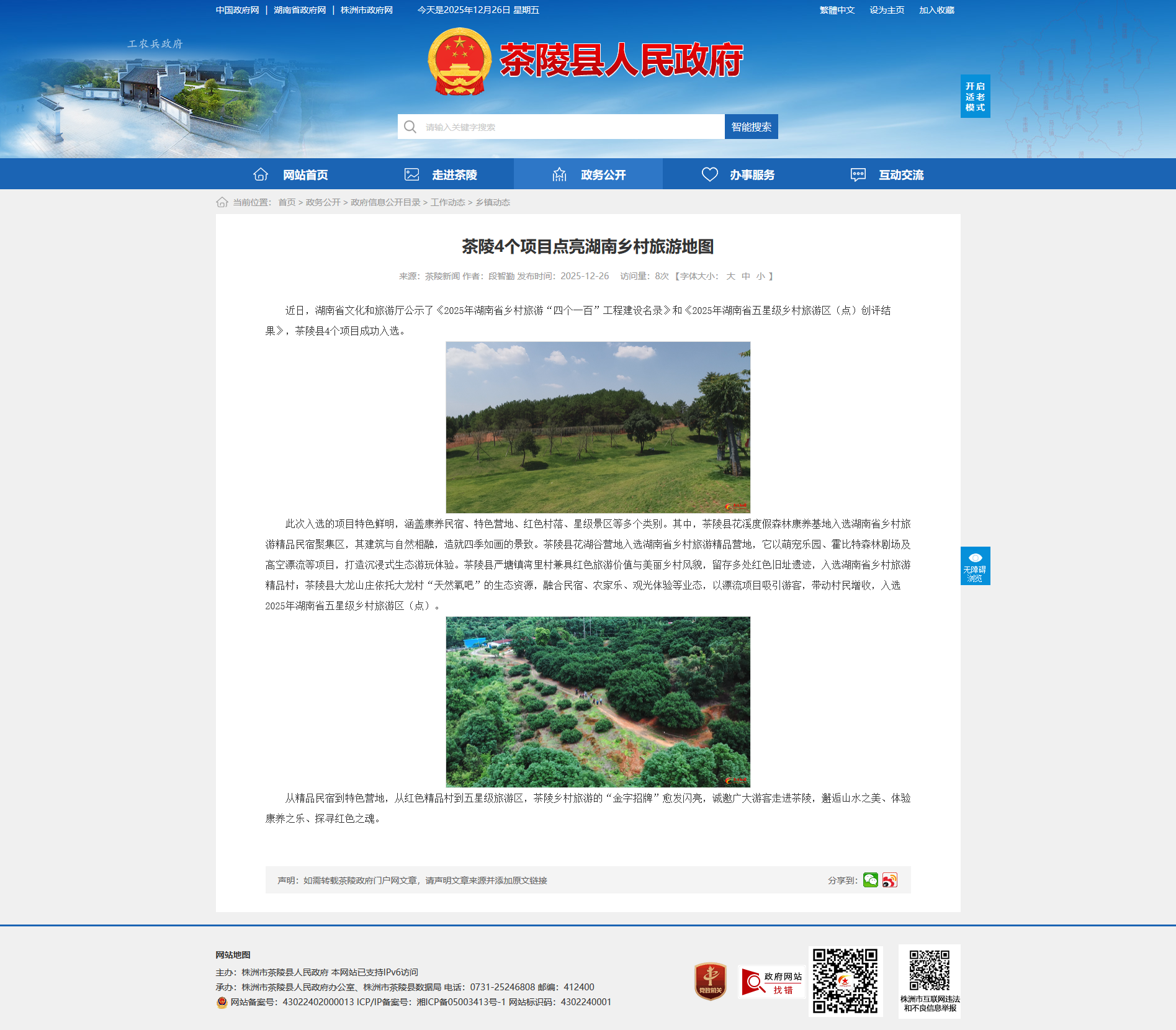 近日,湖南省文化和旅游厅公示了《2025年湖南省乡村旅游“四个一百”工程建设名录》和《2025年湖南省五星级乡村旅游区(点)创评结果》,茶陵县4个项目成功入选。