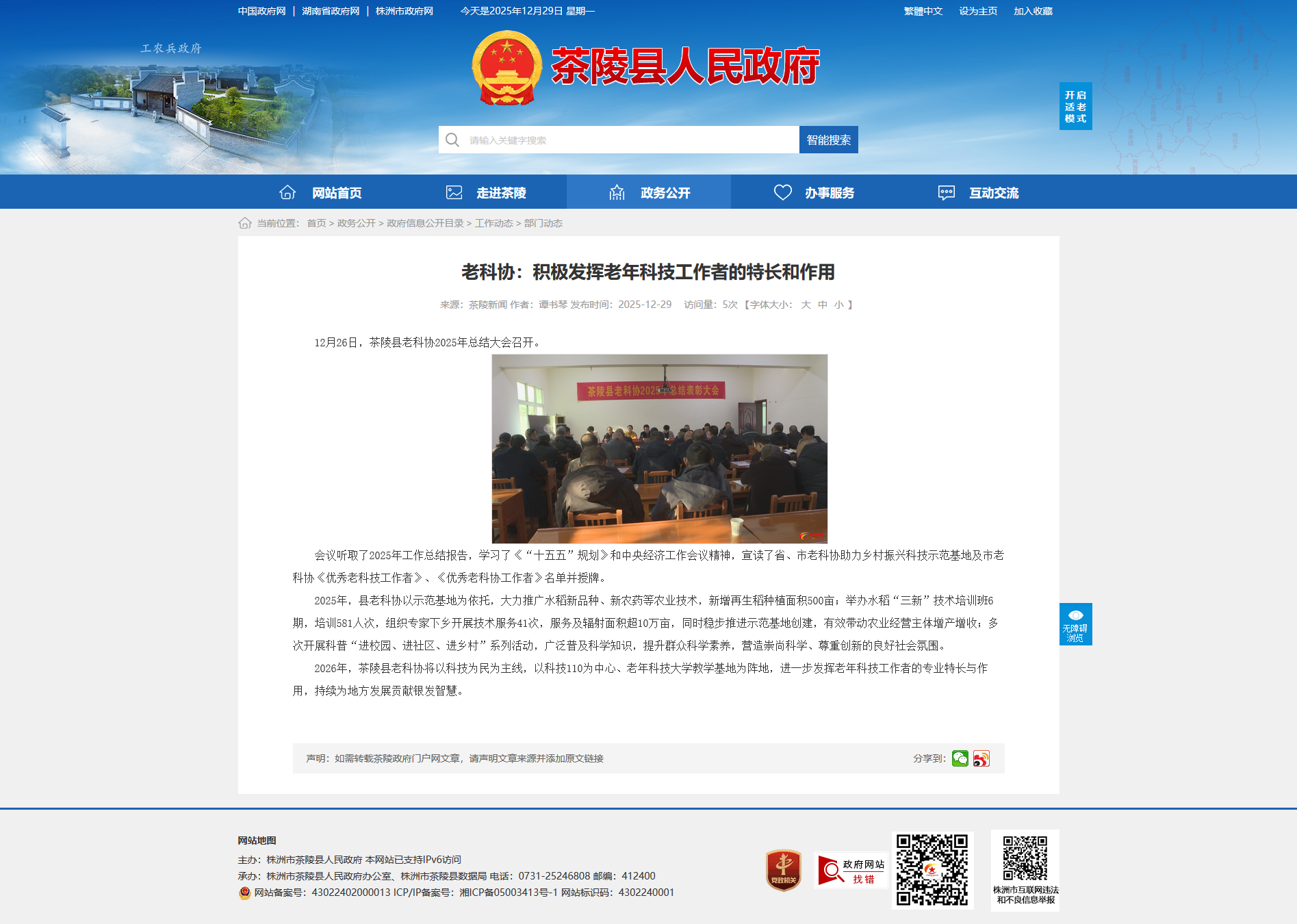 2026年,茶陵县老科协将以科技为民为主线,以科技110为中心、老年科技大学教学基地为阵地,进一步发挥老年科技工作者的专业特长与作用,持续为地方发展贡献银发智慧。