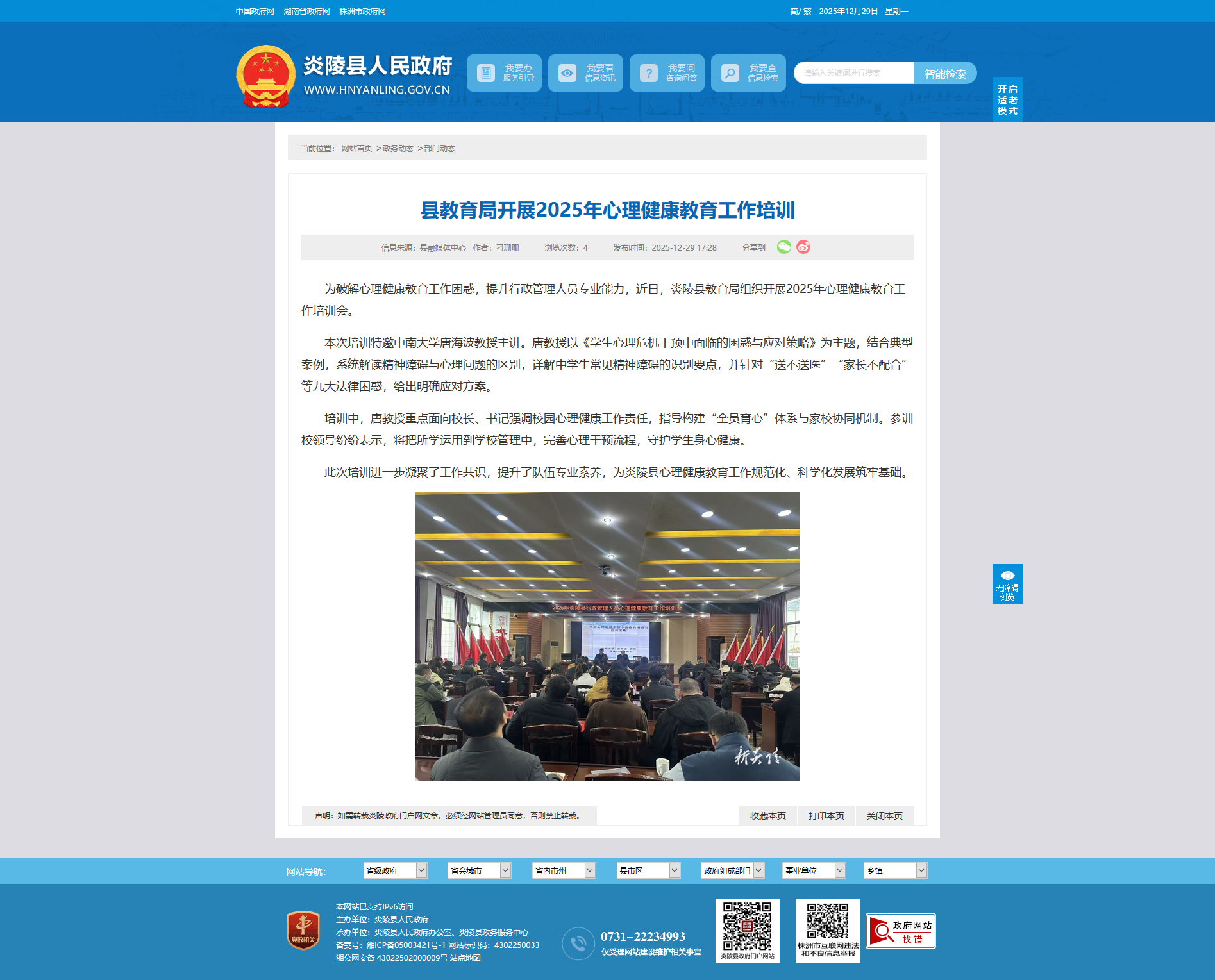为破解心理健康教育工作困惑,提升行政管理人员专业能力,近日,炎陵县教育局组织开展2025年心理健康教育工作培训会。