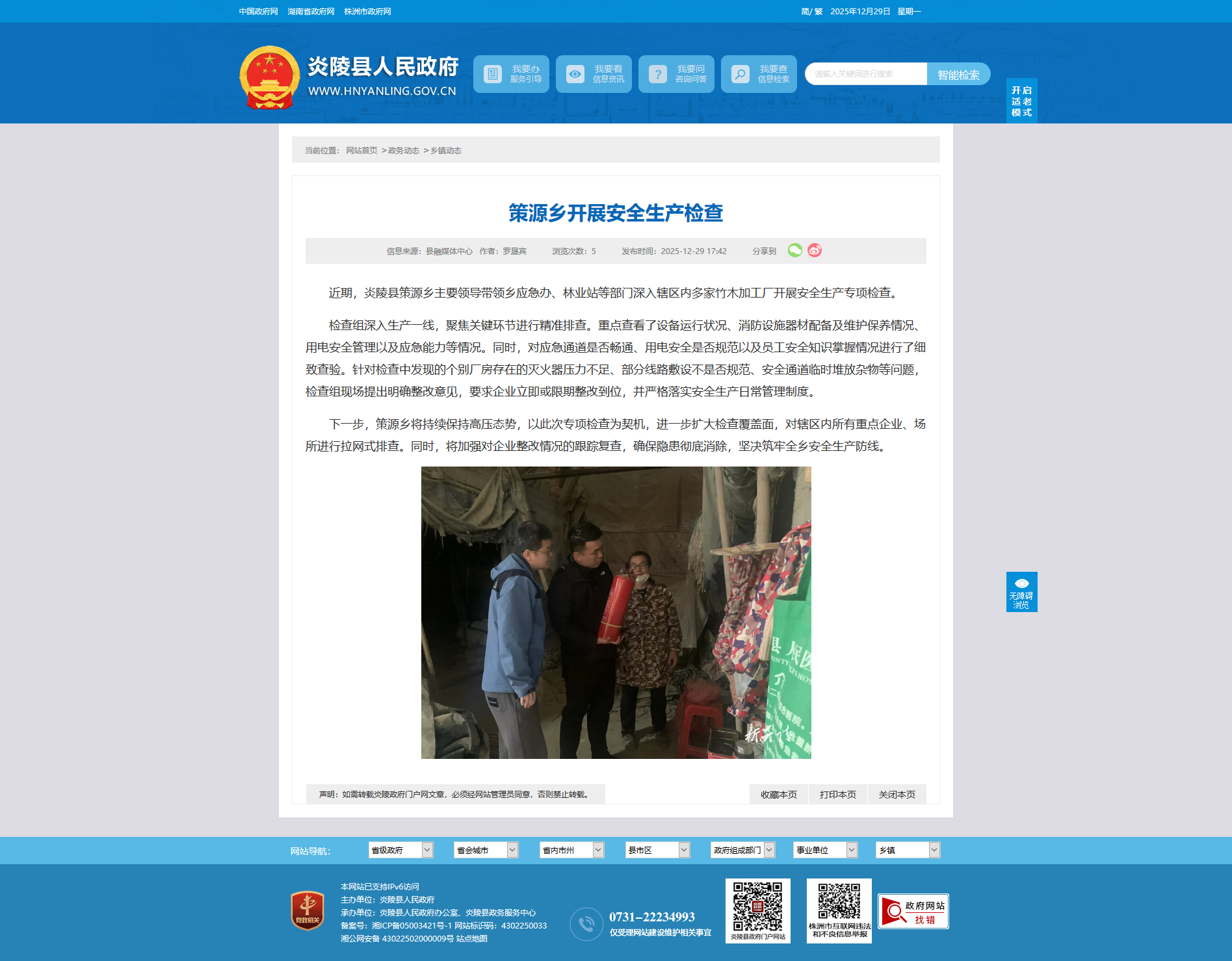 近期,炎陵县策源乡主要领导带领乡应急办、林业站等部门深入辖区内多家竹木加工厂开展安全生产专项检查。