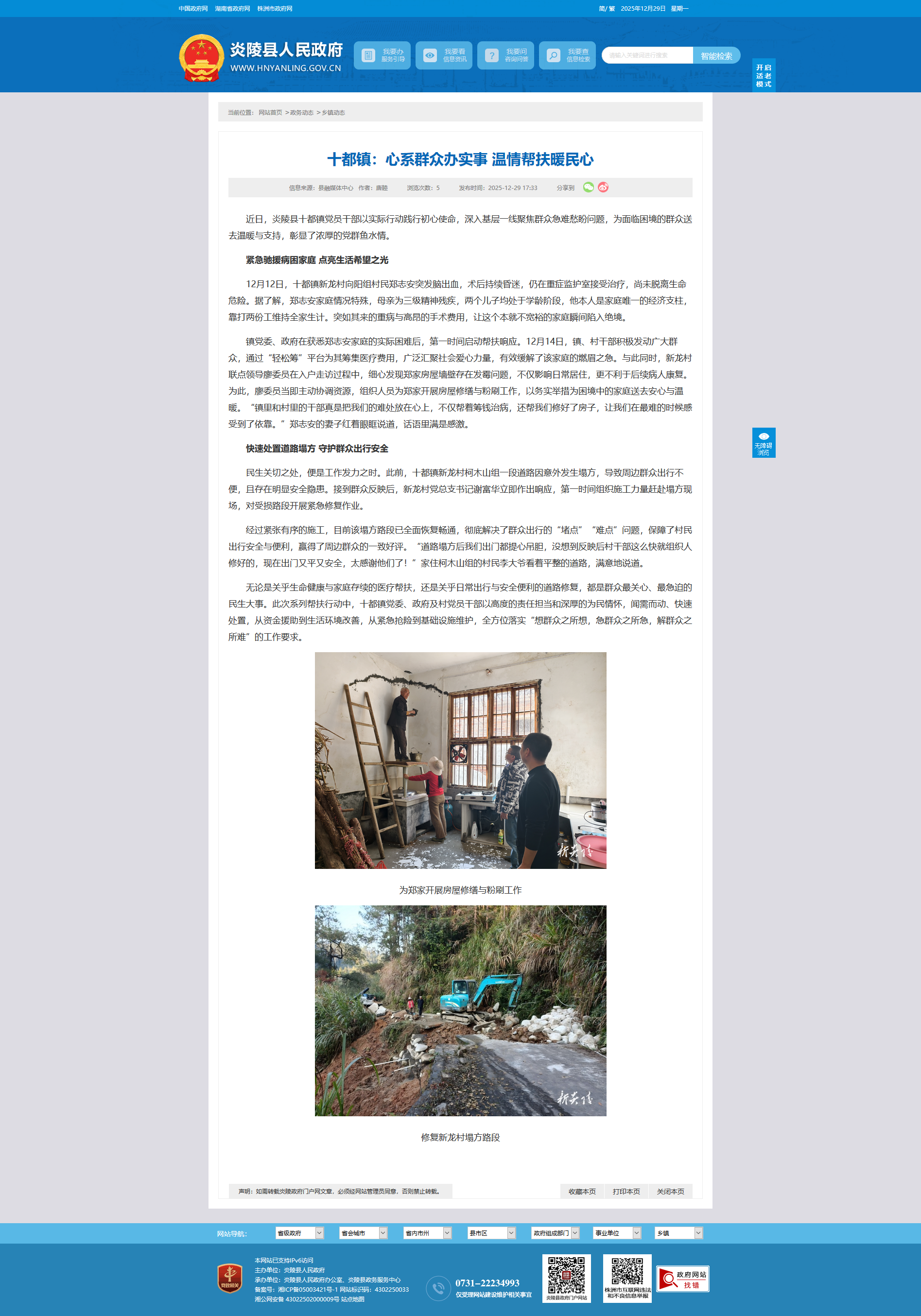 无论是关乎生命健康与家庭存续的医疗帮扶,还是关乎日常出行与安全便利的道路修复,都是群众最关心、最急迫的民生大事。此次系列帮扶行动中,十都镇党委、政府及村党员干部以高度的责任担当和深厚的为民情怀,闻需而动、快速处置,从资金援助到生活环境改善,从紧急抢险到基础设施维护,全方位落实“想群众之所想,急群众之所急,解群众之所难”的工作要求。