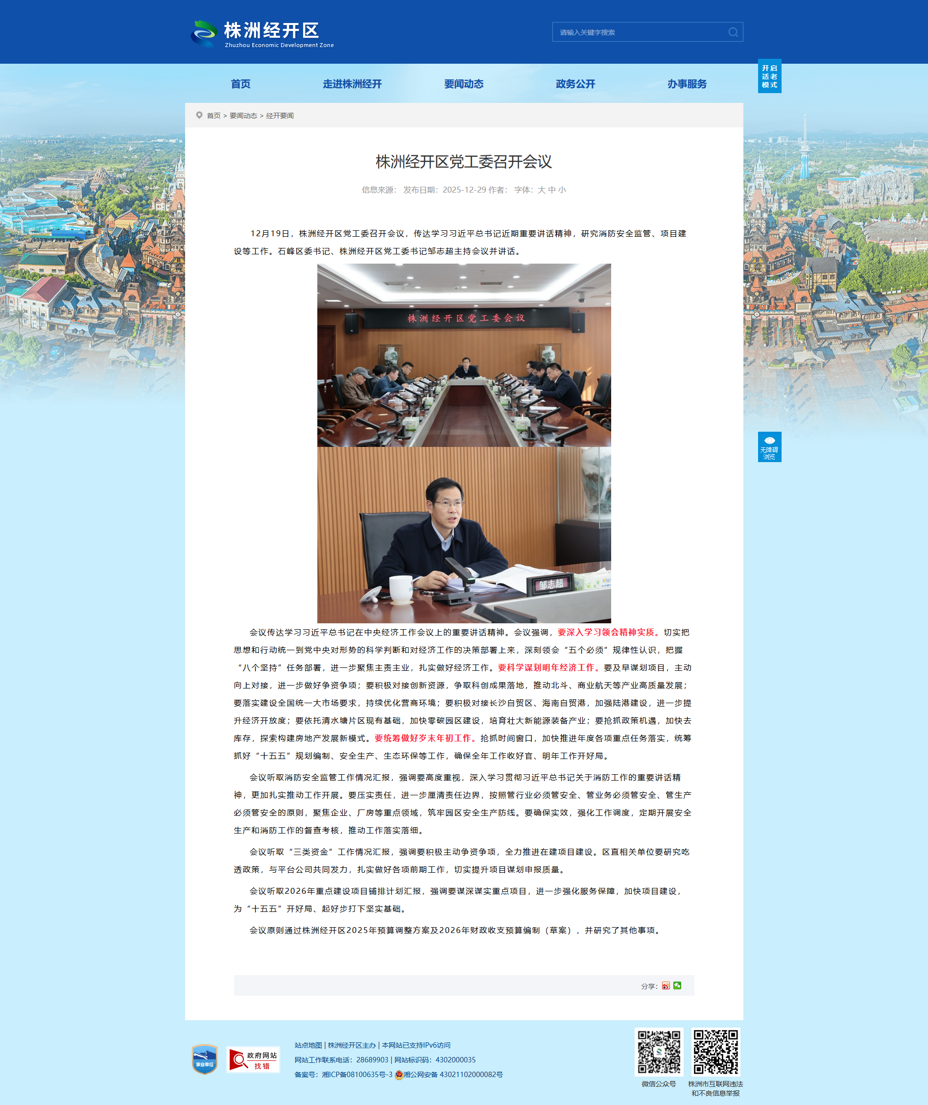 会议原则通过株洲经开区2025年预算调整方案及2026年财政收支预算编制(草案),并研究了其他事项。