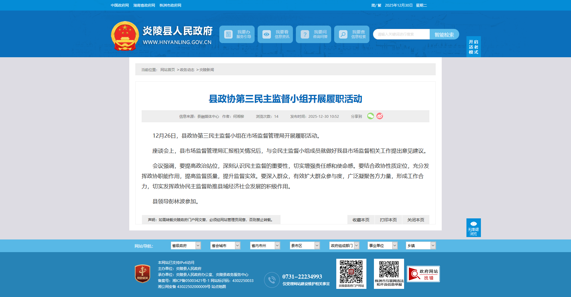 时间:2025-12-30 10:52:00 来源: 炎陵县人民政府 来源截图