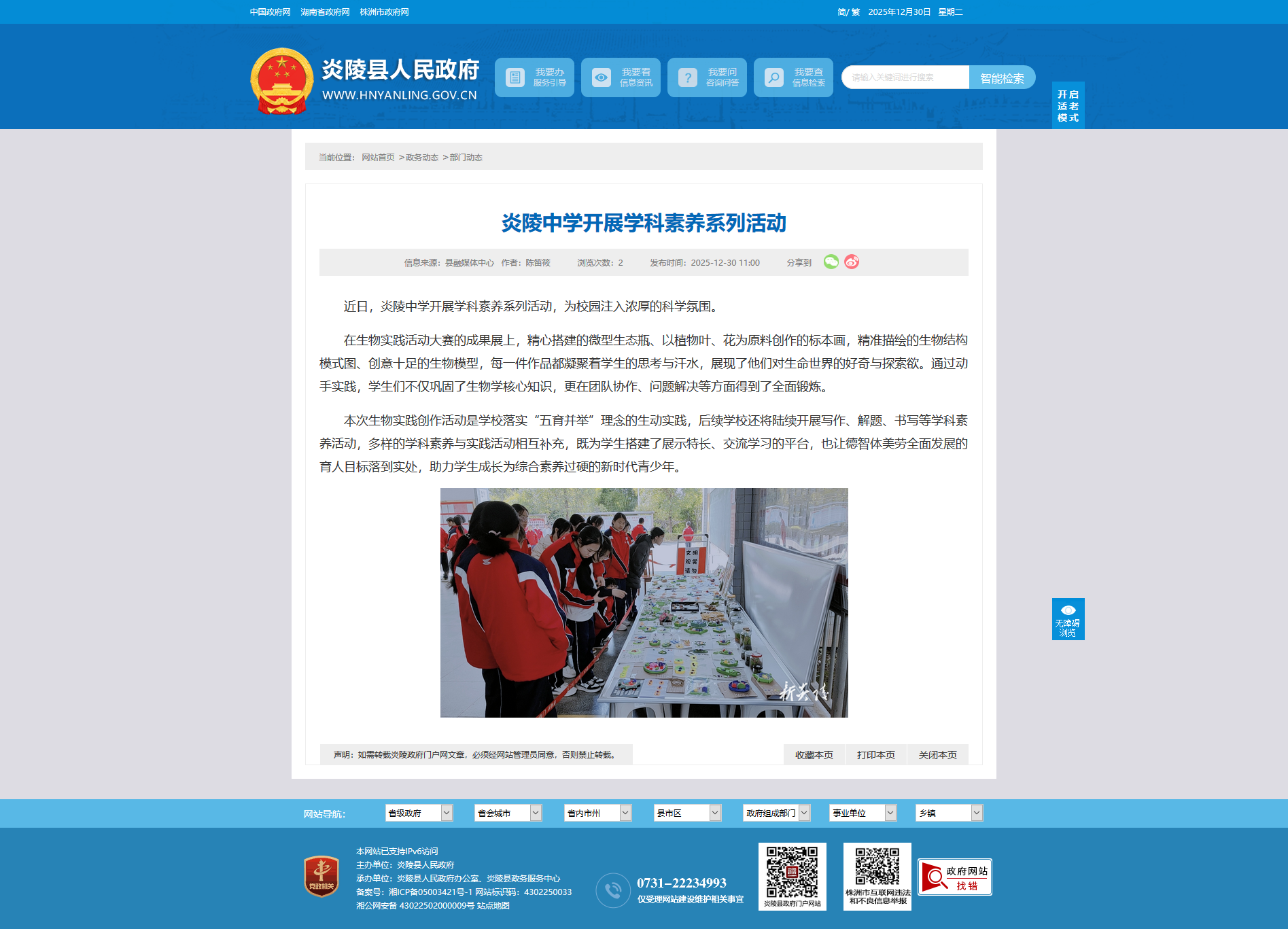 近日,炎陵中学开展学科素养系列活动,为校园注入浓厚的科学氛围。