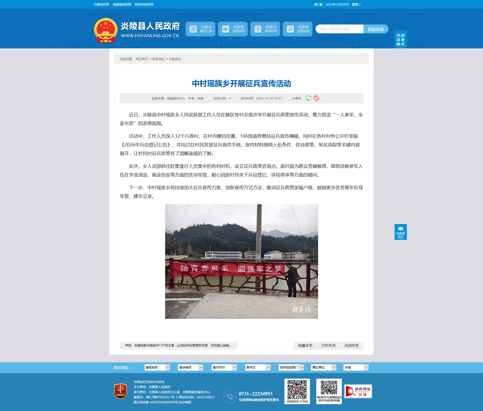 近日,炎陵县中村瑶族乡人民武装部工作人员在辖区各村多措并举开展征兵政策宣传活动,着力营造“一人参军,全家光荣”的浓厚氛围。