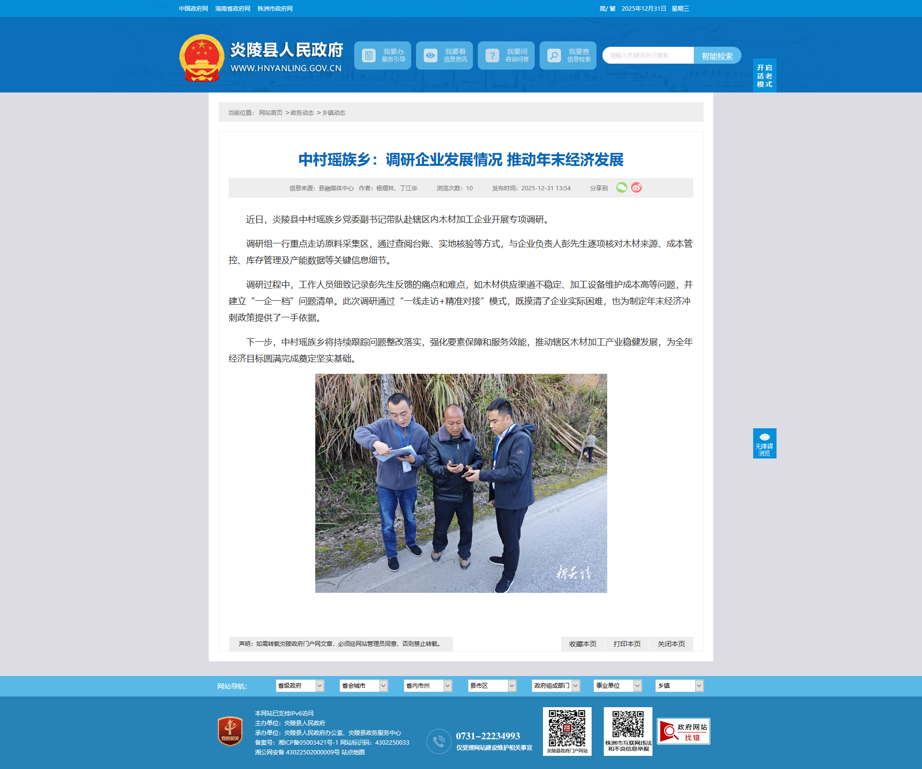 近日,炎陵县中村瑶族乡党委副书记带队赴辖区内木材加工企业开展专项调研。