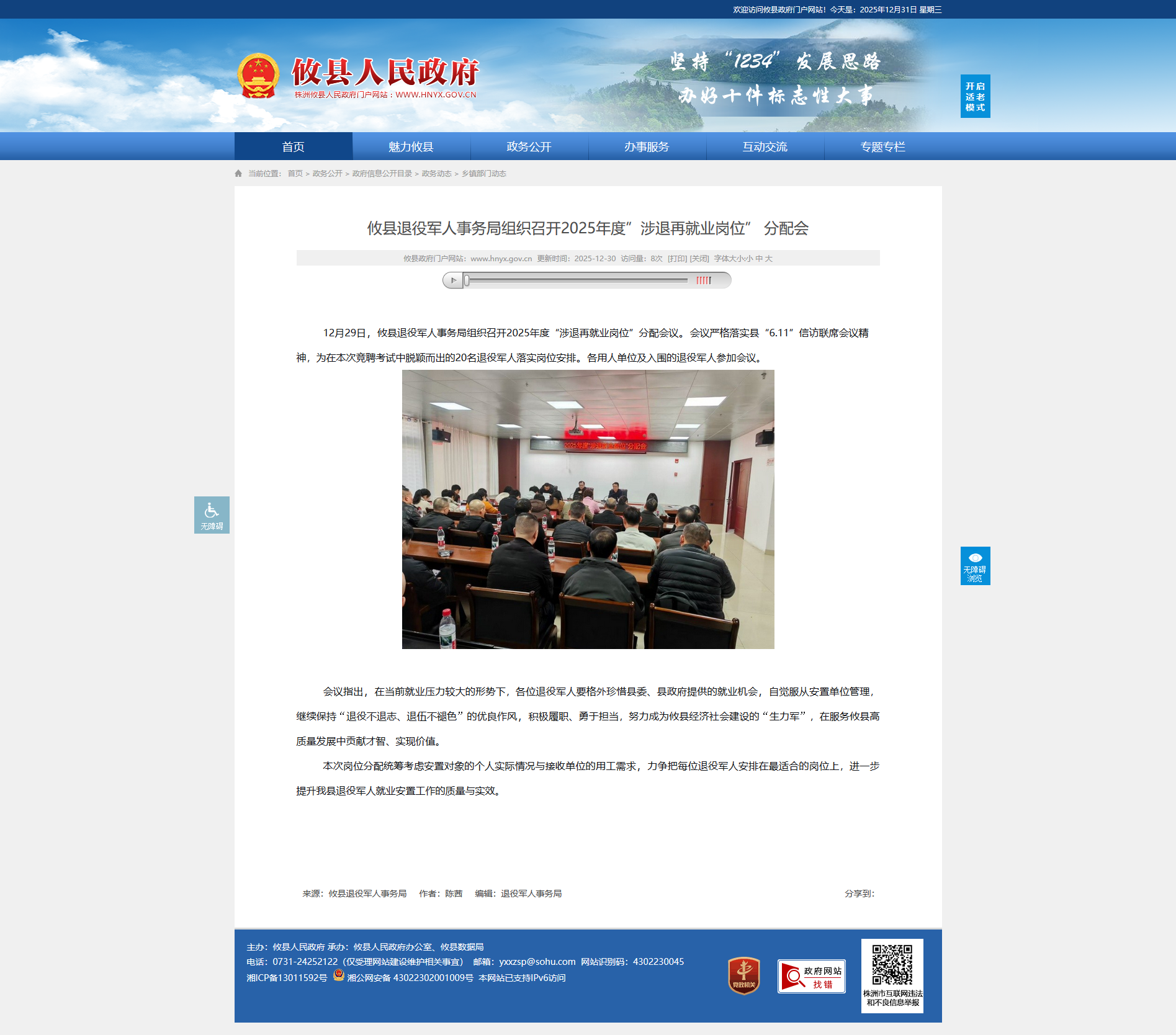 12月29日,攸县退役军人事务局组织召开2025年度“涉退再就业岗位”分配会议。会议严格落实县“6.11”信访联席会议精神,为在本次竞聘考试中脱颖而出的20名退役军人落实岗位安排。各用人单位及入围的退役军人参加会议。