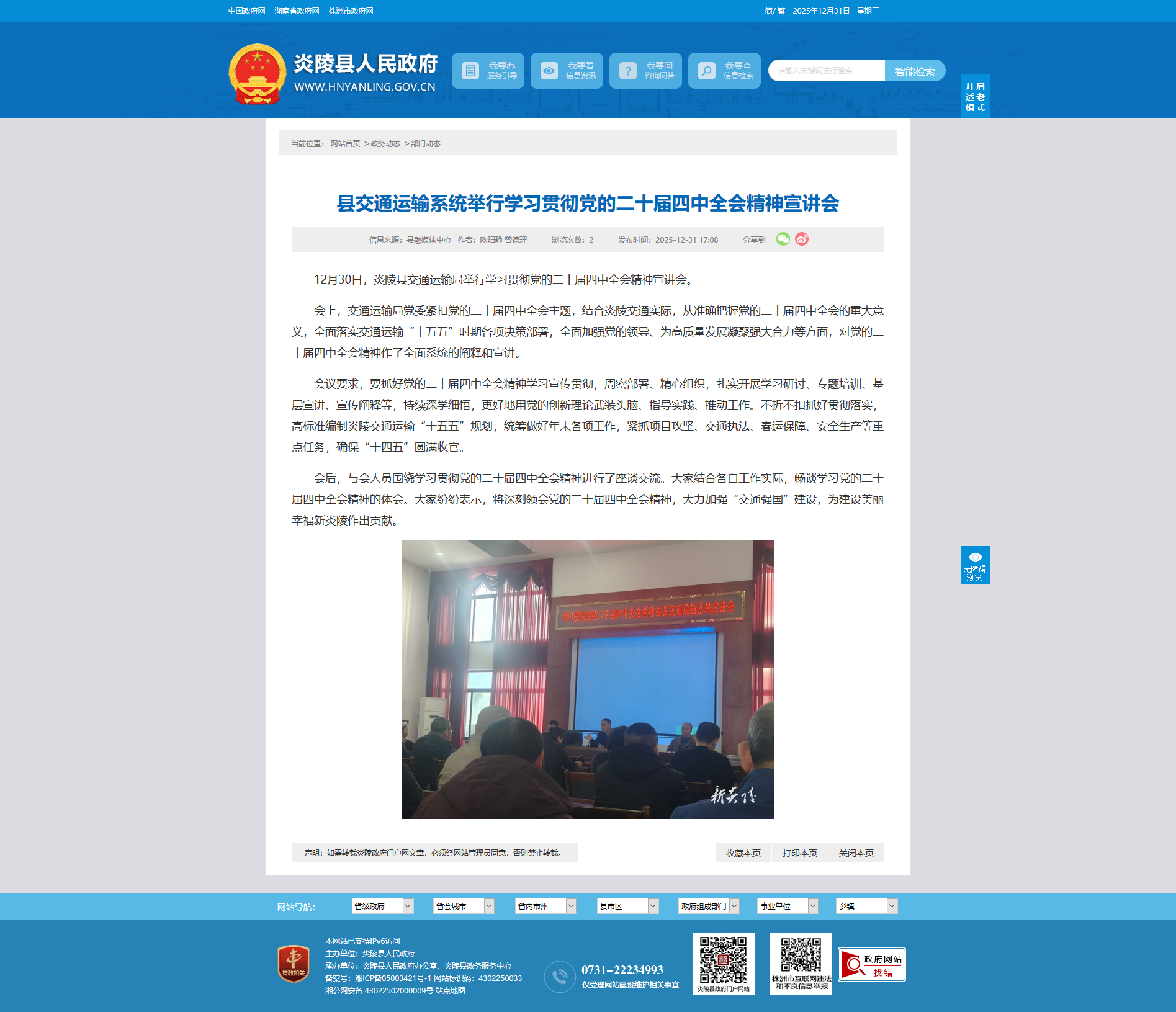12月30日,炎陵县交通运输局举行学习贯彻党的二十届四中全会精神宣讲会。