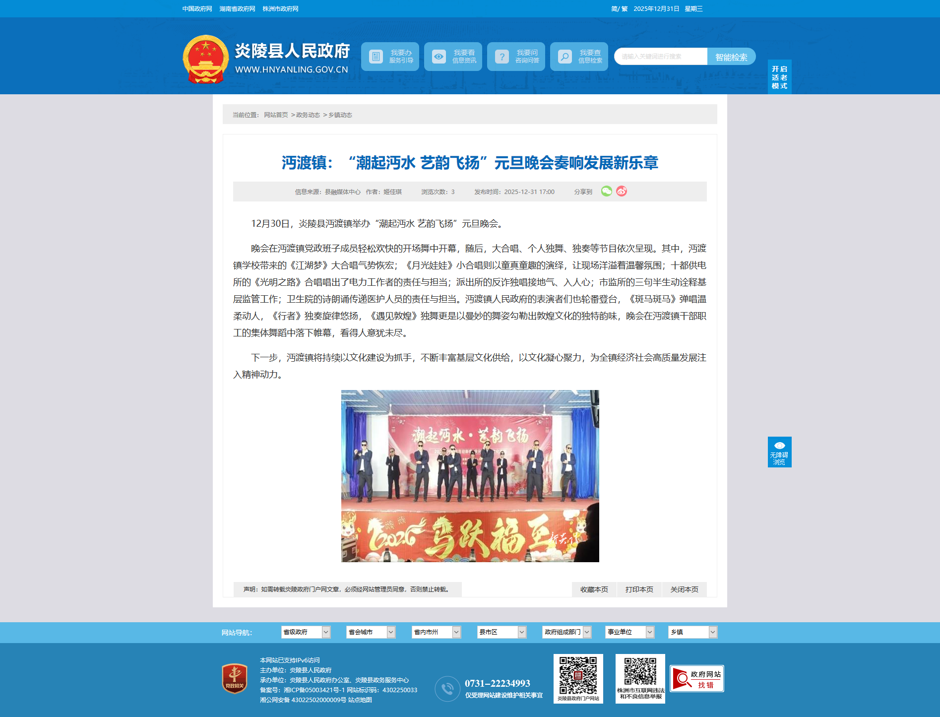 12月30日,炎陵县沔渡镇举办“潮起沔水 艺韵飞扬”元旦晚会。