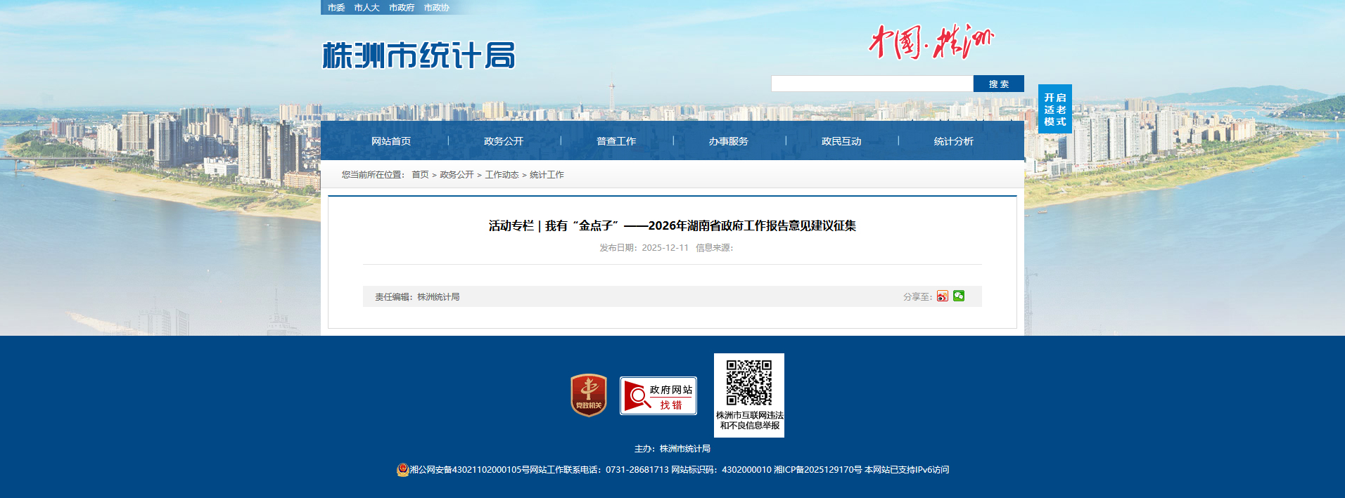 活动专栏|我有“金点子”——2026年湖南省政府工作报告意见建议征集