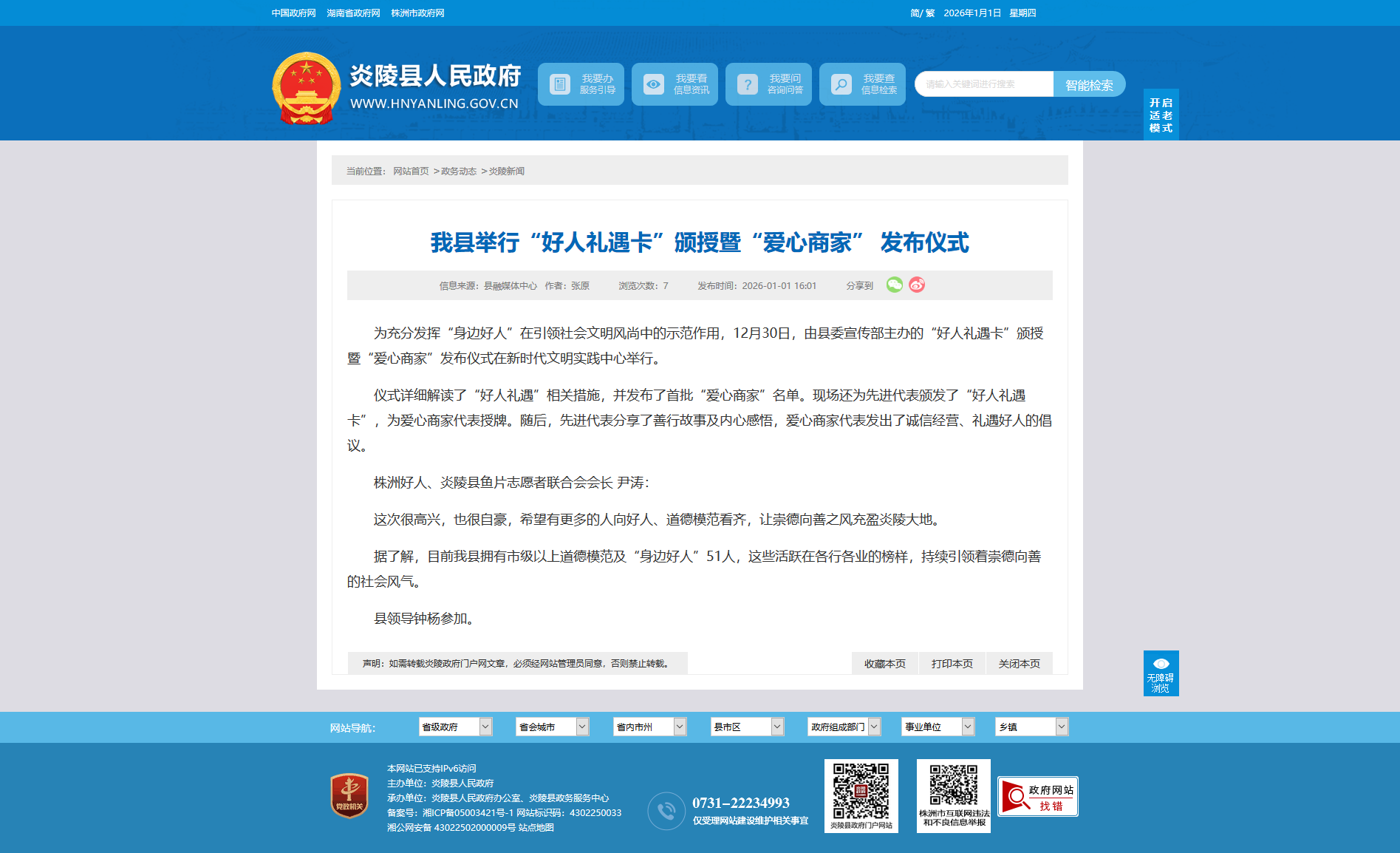为充分发挥“身边好人”在引领社会文明风尚中的示范作用,12月30日,由县委宣传部主办的“好人礼遇卡”颁授暨“爱心商家”发布仪式在新时代文明实践中心举行。
