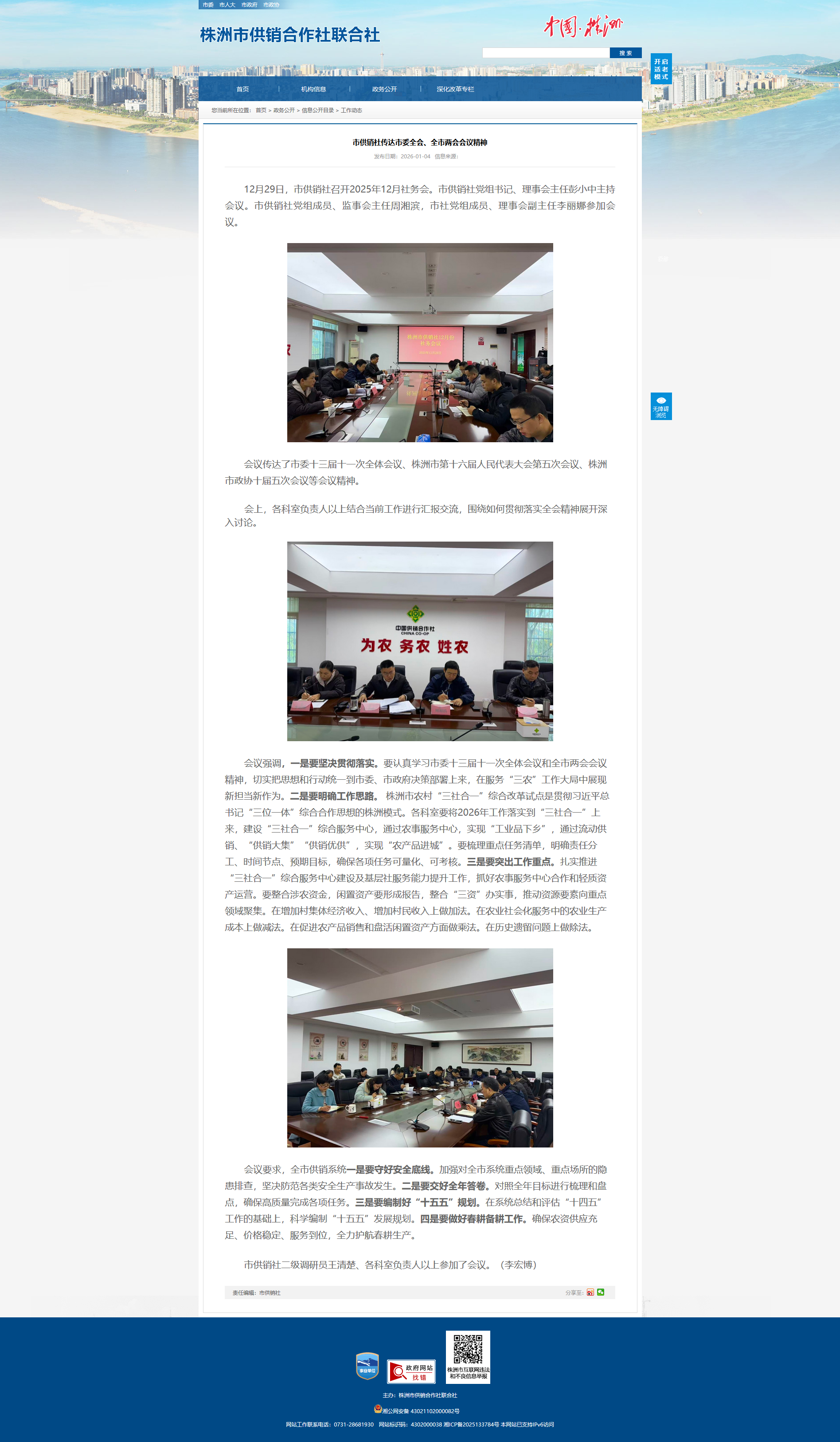 会议强调,一是要坚决贯彻落实。要认真学习市委十三届十一次全体会议和全市两会会议精神,切实把思想和行动统一到市委、市政府决策部署上来,在服务“三农”工作大局中展现新担当新作为。二是要明确工作思路。 株洲市农村“三社合一”综合改革试点是贯彻习近平总书记“三位一体”综合合作思想的株洲模式。各科室要将2026年工作落实到“三社合一”上来,建设“三社合一”综合服务中心,通过农事服务中心,实现“工业品下乡”,通过流动供销、“供销大集”“供销优供”,实现“农产品进城”。要梳理重点任务清单,明确责任分工、时间节点、预期目标,确保各项任务可量化、可考核。三是要突出工作重点。扎实推进“三社合一”综合服务中心建设及基层社服务能力提升工作,抓好农事服务中心合作和轻质资产运营。要整合涉农资金,闲置资产要形成报告,整合“三资”办实事,推动资源要素向重点领域聚集。在增加村集体经济收入、增加村民收入上做加法。在农业社会化服务中的农业生产成本上做减法。在促进农产品销售和盘活闲置资产方面做乘法。在历史遗留问题上做除法。