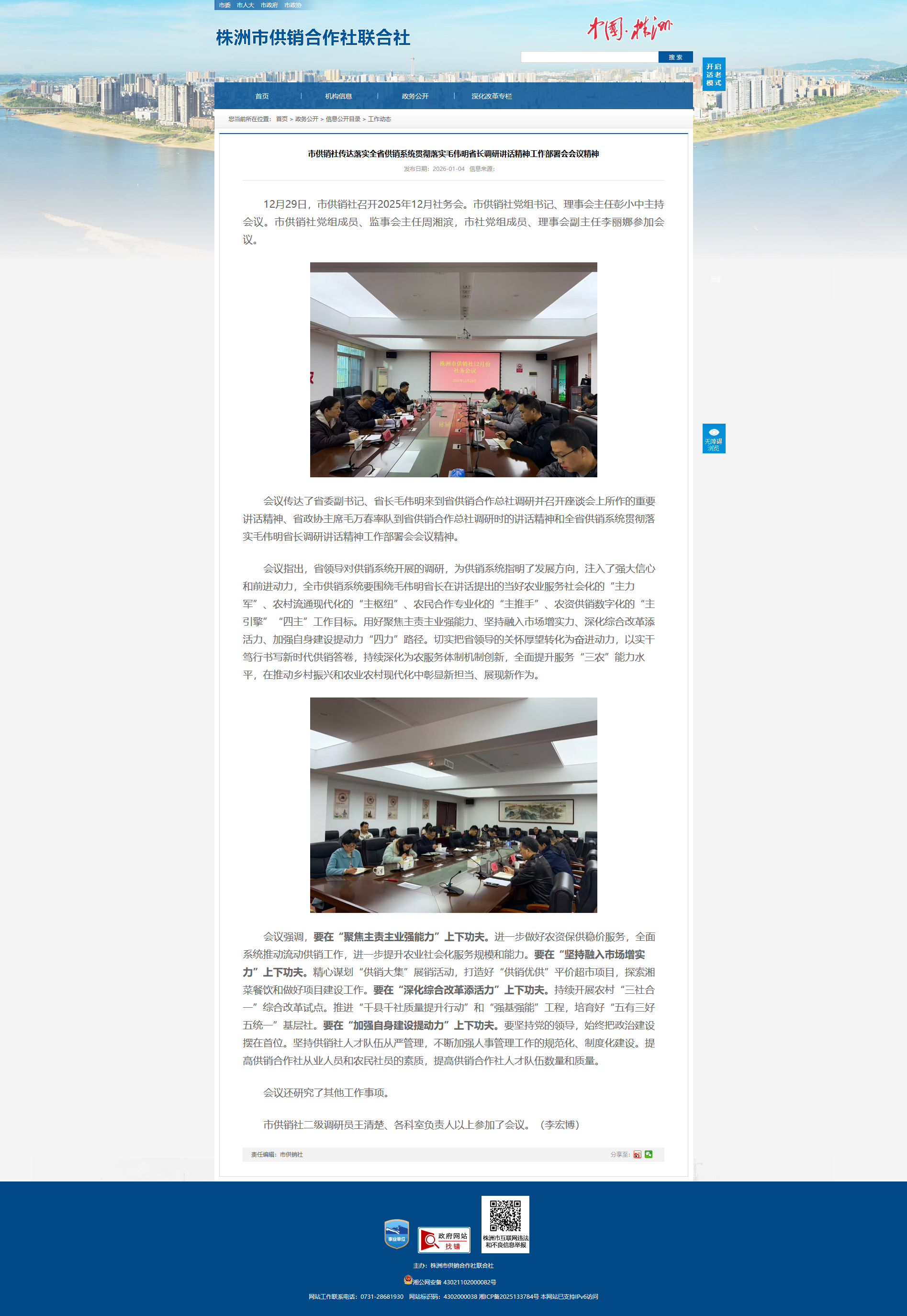 12月29日,市供销社召开2025年12月社务会。市供销社党组书记、理事会主任彭小中主持会议。市供销社党组成员、监事会主任周湘滨,市社党组成员、理事会副主任李丽娜参加会议。