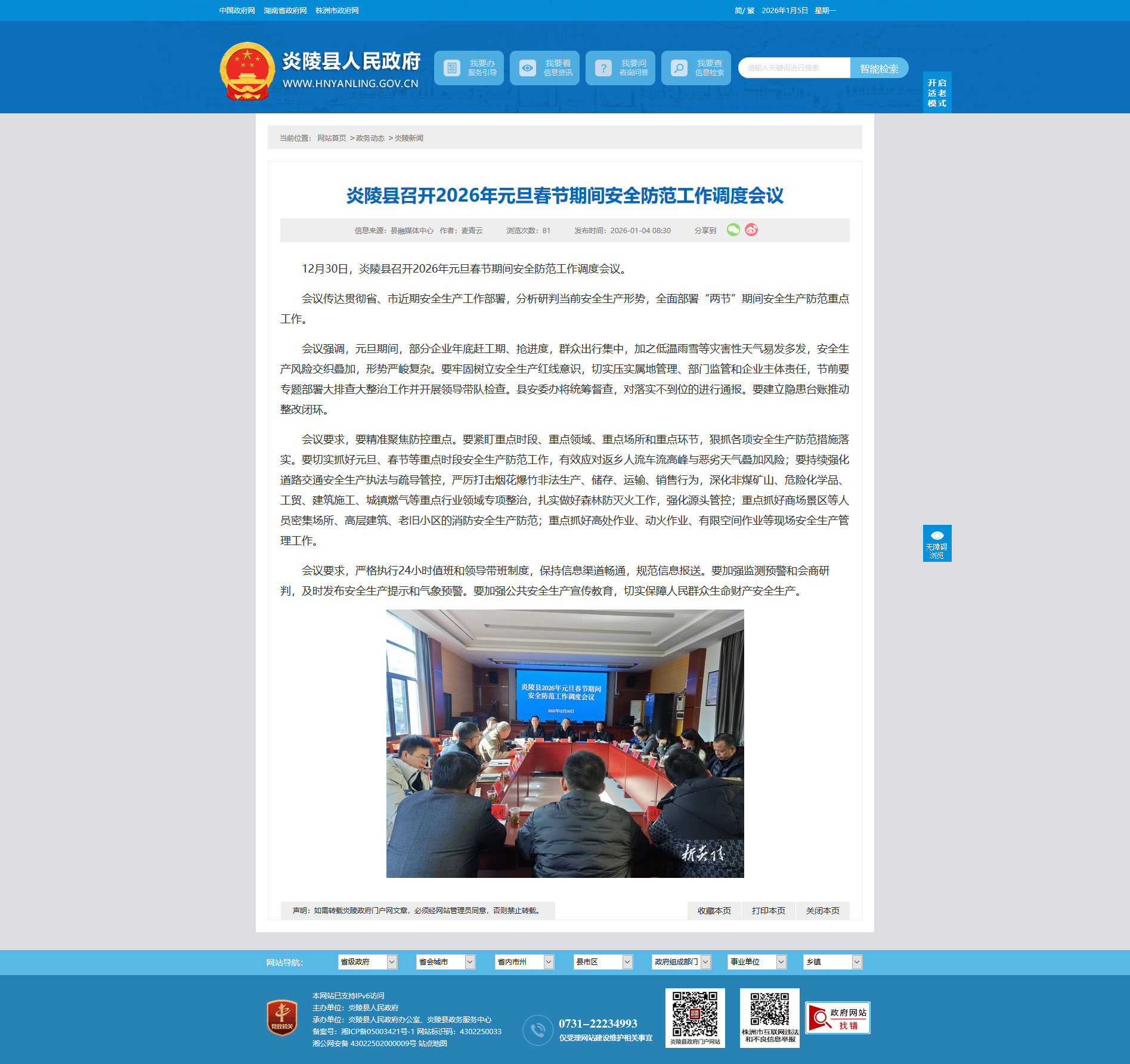 12月30日,炎陵县召开2026年元旦春节期间安全防范工作调度会议。