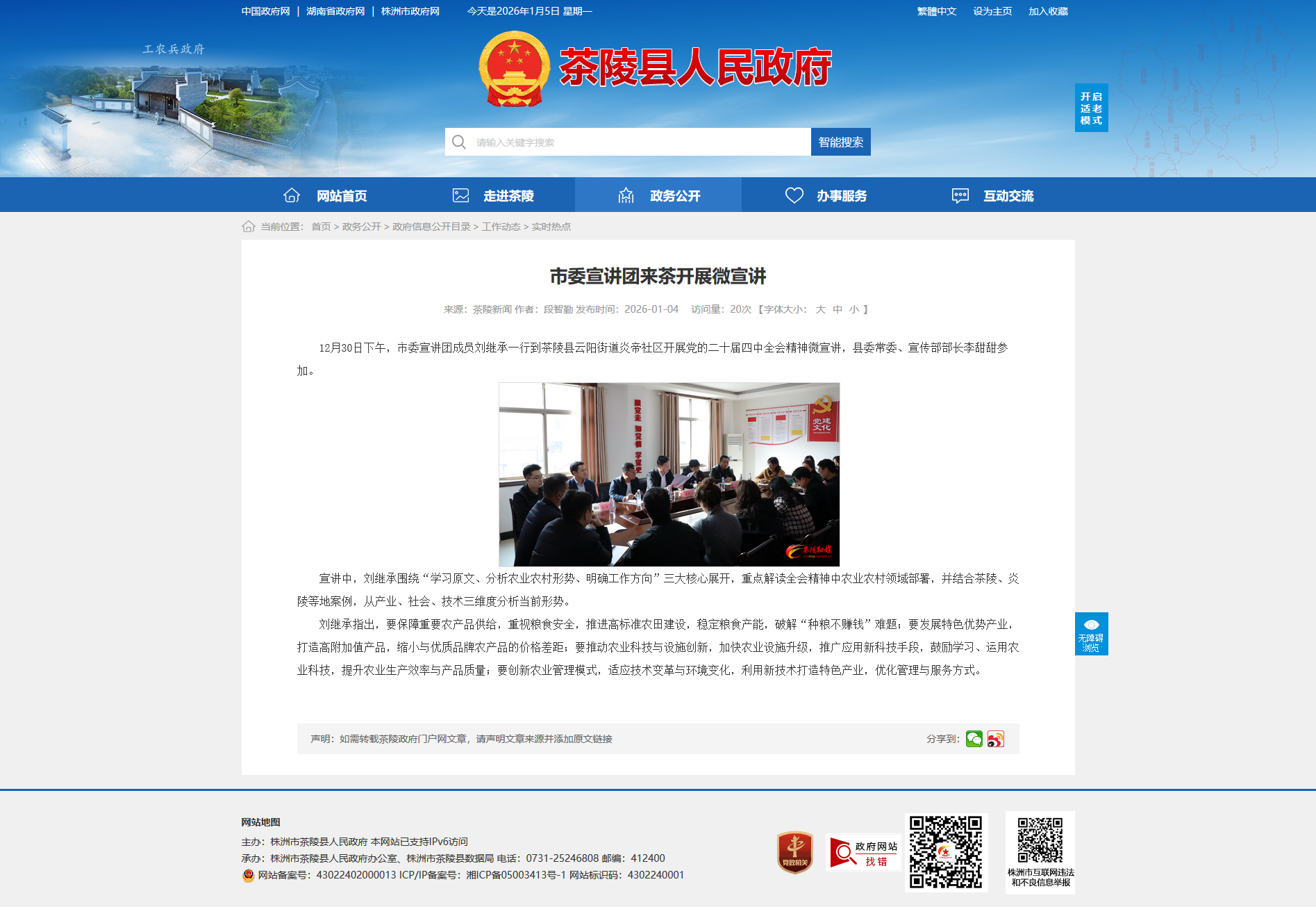 12月30日下午,市委宣讲团成员刘继承一行到茶陵县云阳街道炎帝社区开展党的二十届四中全会精神微宣讲,县委常委、宣传部部长李甜甜参加。