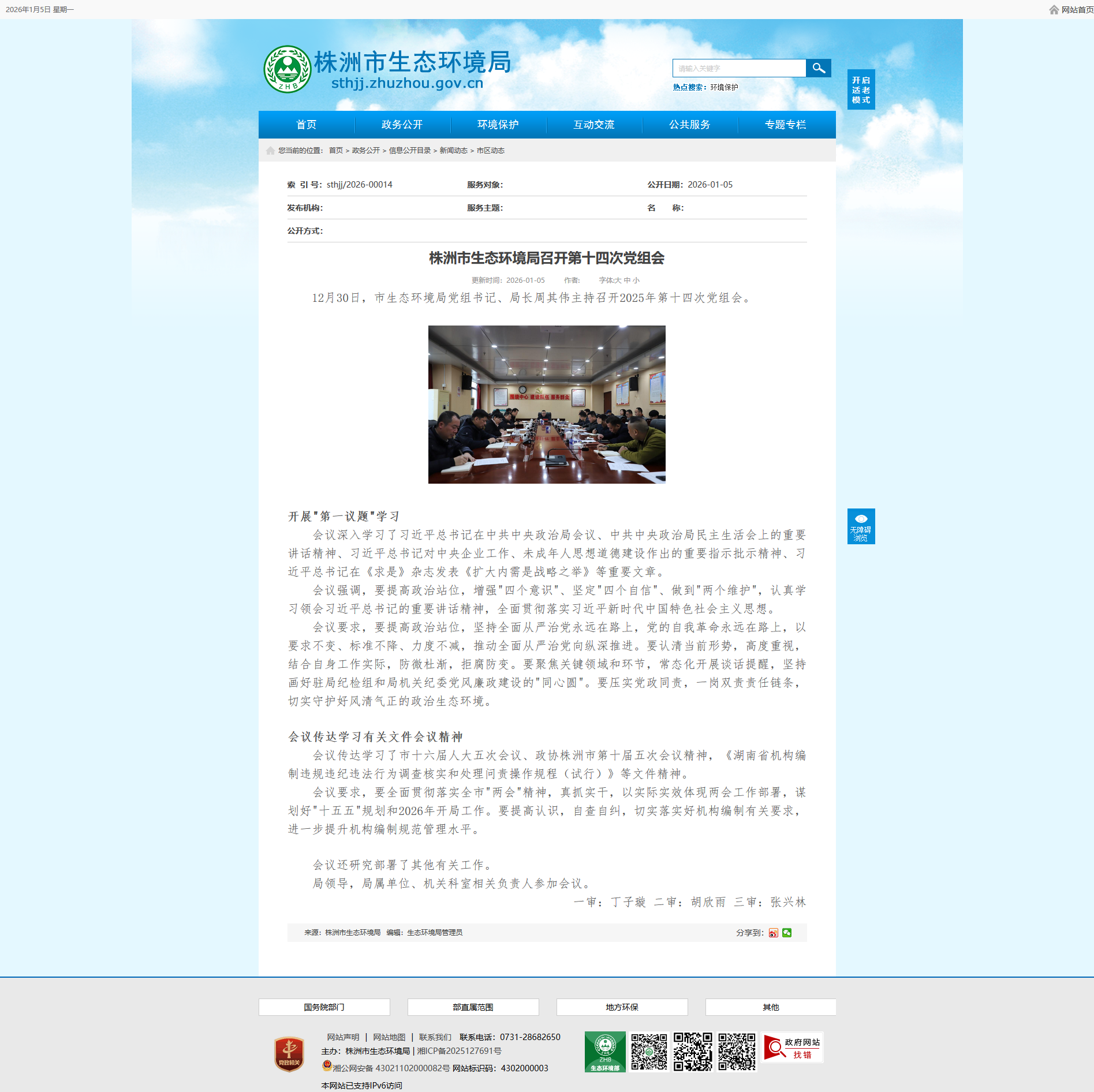 12月30日,市生态环境局党组书记、局长周其伟主持召开2025年第十四次党组会。