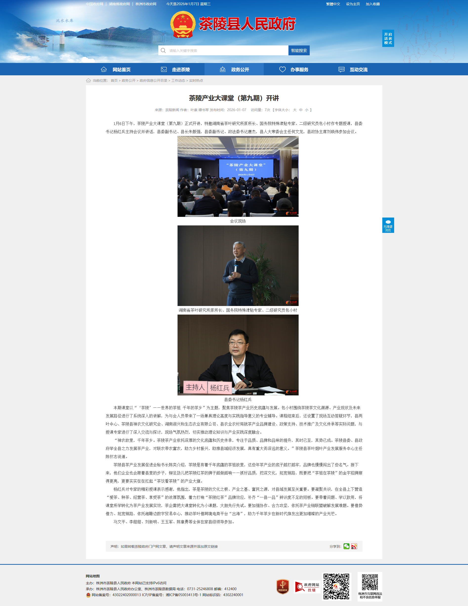 1月6日下午,茶陵产业大课堂(第九期)正式开讲,特邀湖南省茶叶研究所原所长、国务院特殊津贴专家、二级研究员包小村作专题授课,县委书记杨红兵主持会议并讲话,县委副书记、县长朱毅强,县委副书记、政法委书记唐杰,县人大常委会主任何文龙,县政协主席刘晓伟参加会议。