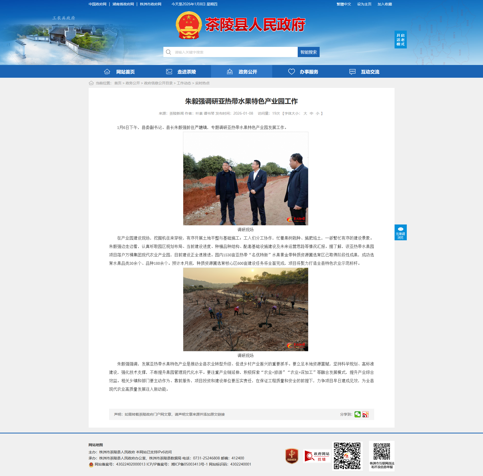 1月6日下午,县委副书记、县长朱毅强前往严塘镇,专题调研亚热带水果特色产业园发展工作。