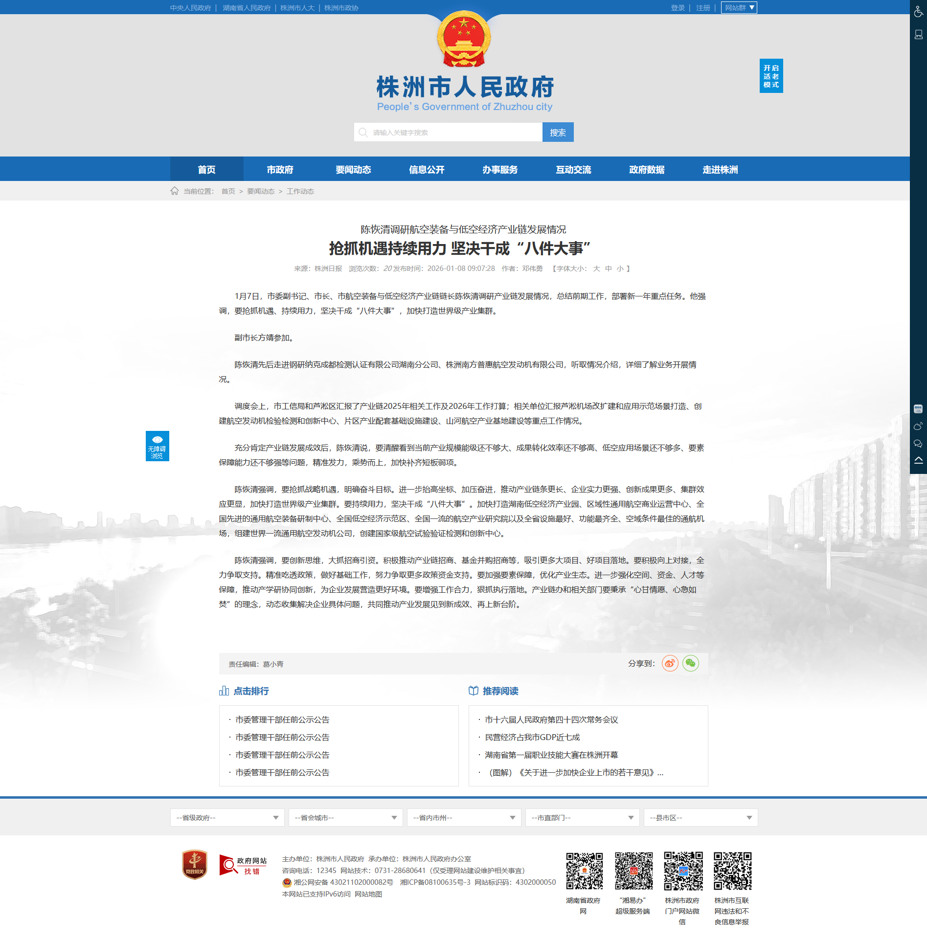 1月7日,市委副书记、市长、市航空装备与低空经济产业链链长陈恢清调研产业链发展情况,总结前期工作,部署新一年重点任务。他强调,要抢抓机遇、持续用力,坚决干成“八件大事”,加快打造世界级产业集群。