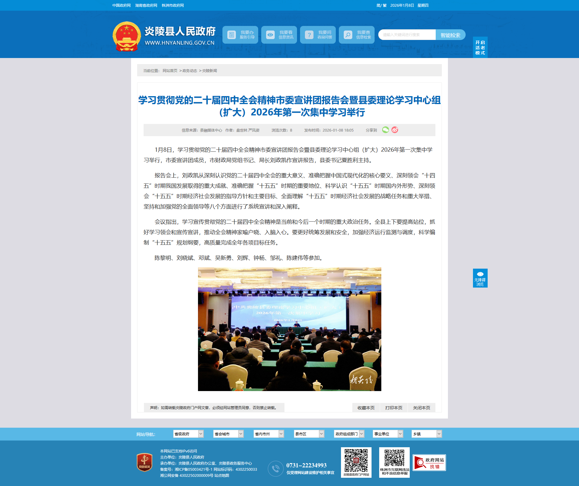 1月8日,学习贯彻党的二十届四中全会精神市委宣讲团报告会暨县委理论学习中心组(扩大)2026年第一次集中学习举行,市委宣讲团成员,市财政局党组书记、局长刘政凯作宣讲报告,县委书记夏胜利主持。