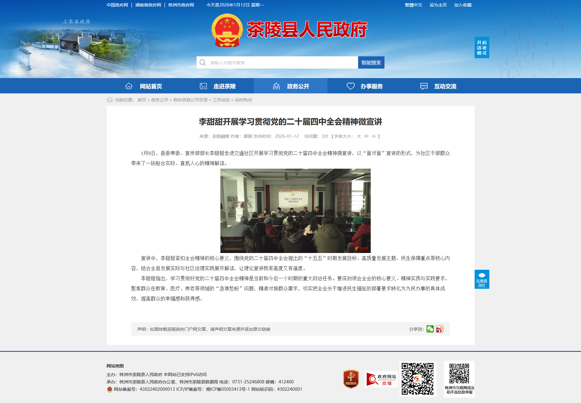 李甜甜指出,学习贯彻好党的二十届四中全会精神是当前和今后一个时期的重大政治任务。要深刻领会全会的核心要义、精神实质与实践要求,聚焦群众在教育、医疗、养老等领域的“急难愁盼”问题,精准对接群众需求,切实把全会关于增进民生福祉的部署要求转化为为民办事的具体成效,提高群众的幸福感和获得感。