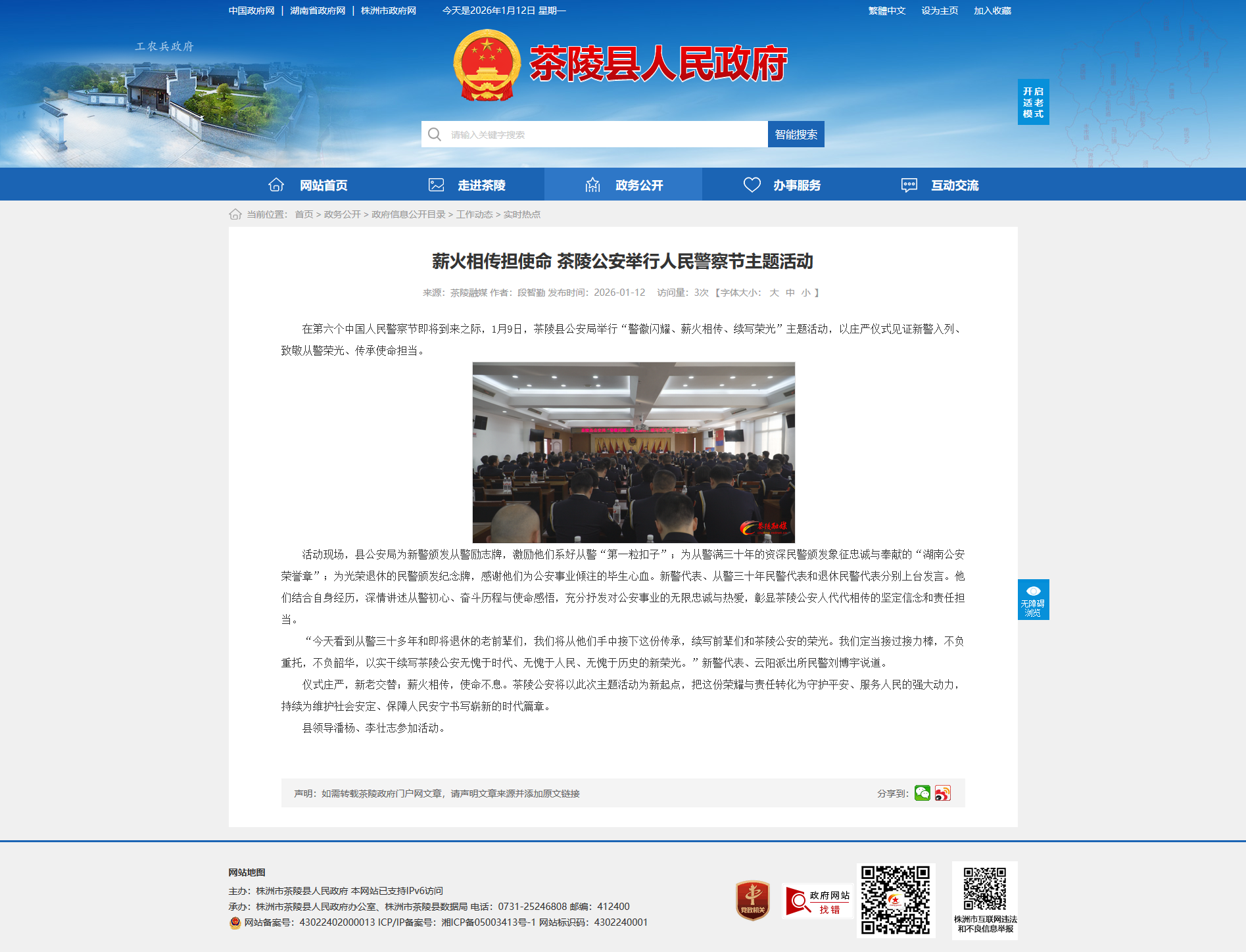 在第六个中国人民警察节即将到来之际,1月9日,茶陵县公安局举行“警徽闪耀、薪火相传、续写荣光”主题活动,以庄严仪式见证新警入列、致敬从警荣光、传承使命担当。