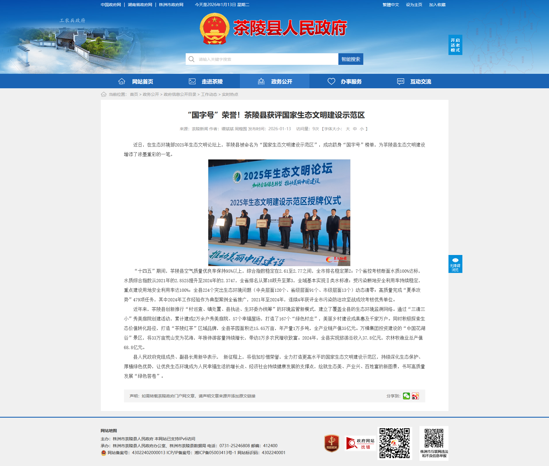 近日,在生态环境部2025年生态文明论坛上,茶陵县被命名为“国家生态文明建设示范区”,成功跻身“国字号”榜单,为茶陵县生态文明建设增添了浓墨重彩的一笔。