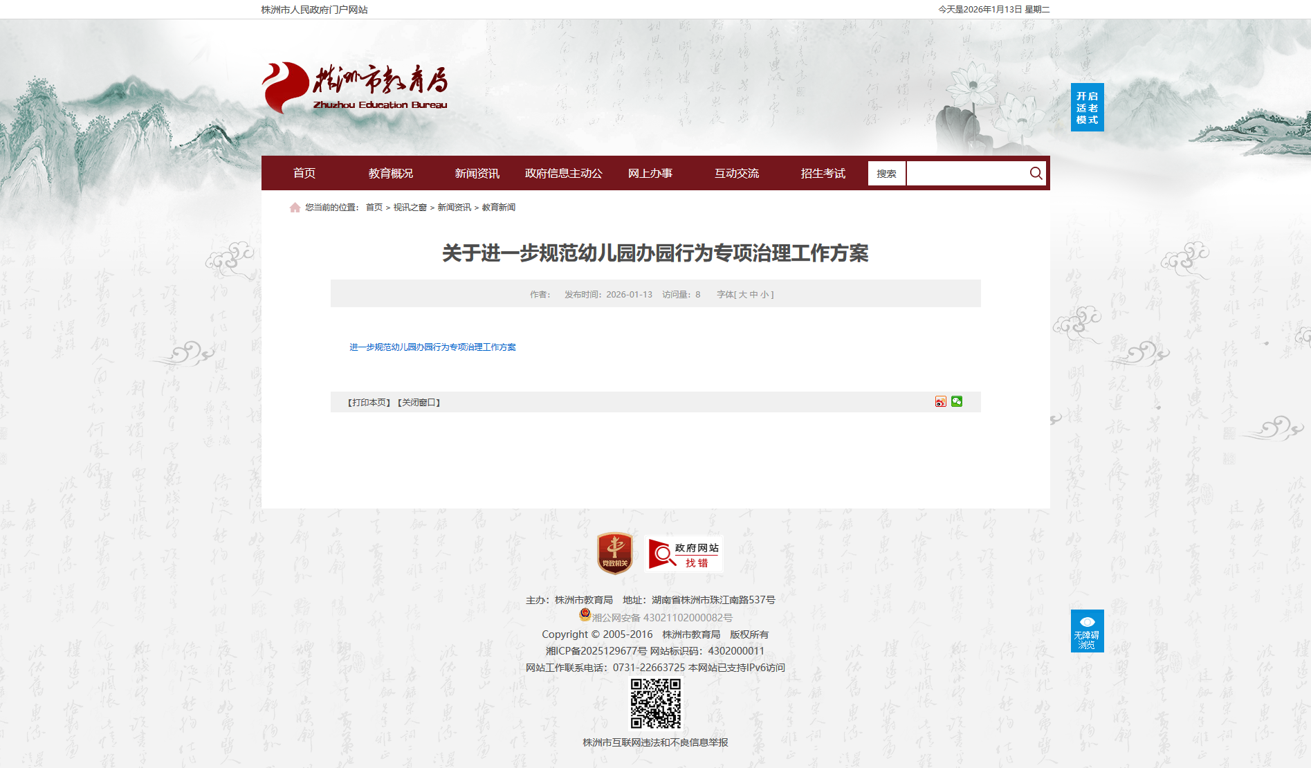 关于进一步规范幼儿园办园行为专项治理工作方案