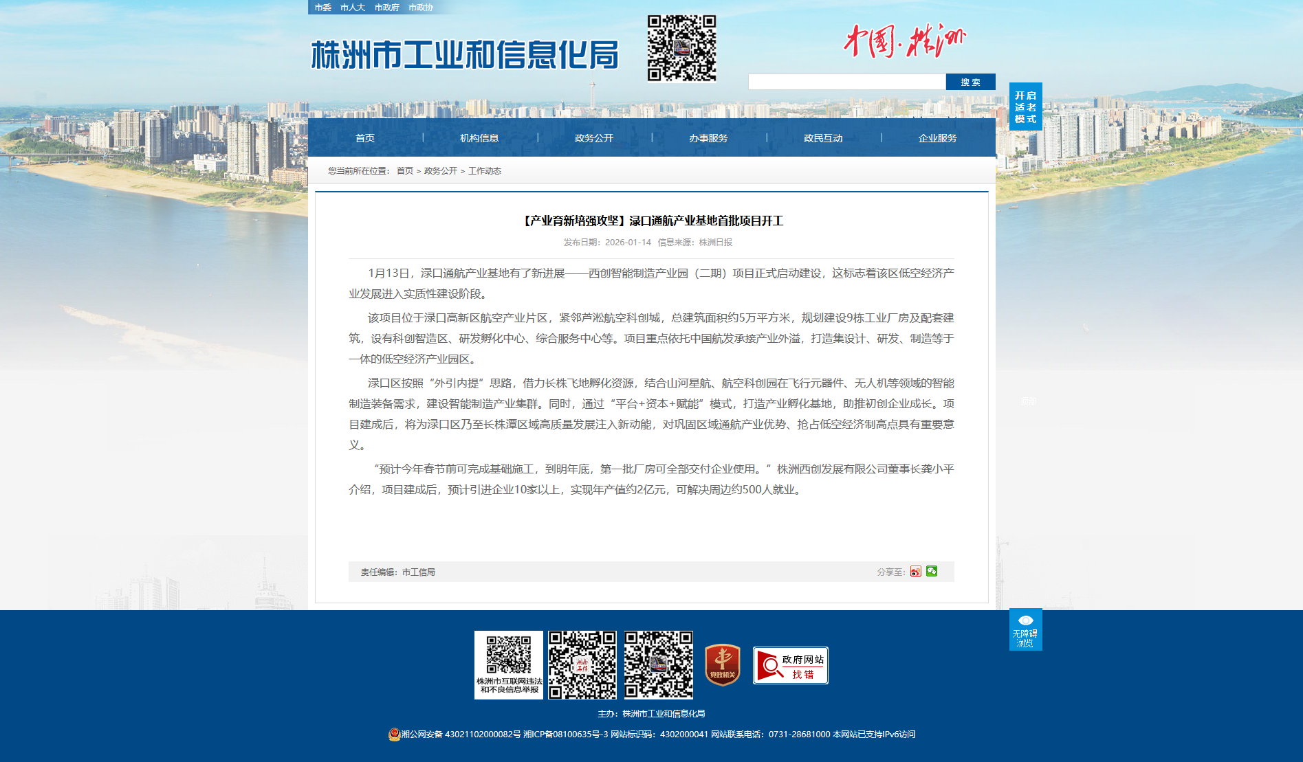 1月13日,渌口通航产业基地有了新进展——西创智能制造产业园(二期)项目正式启动建设,这标志着该区低空经济产业发展进入实质性建设阶段。