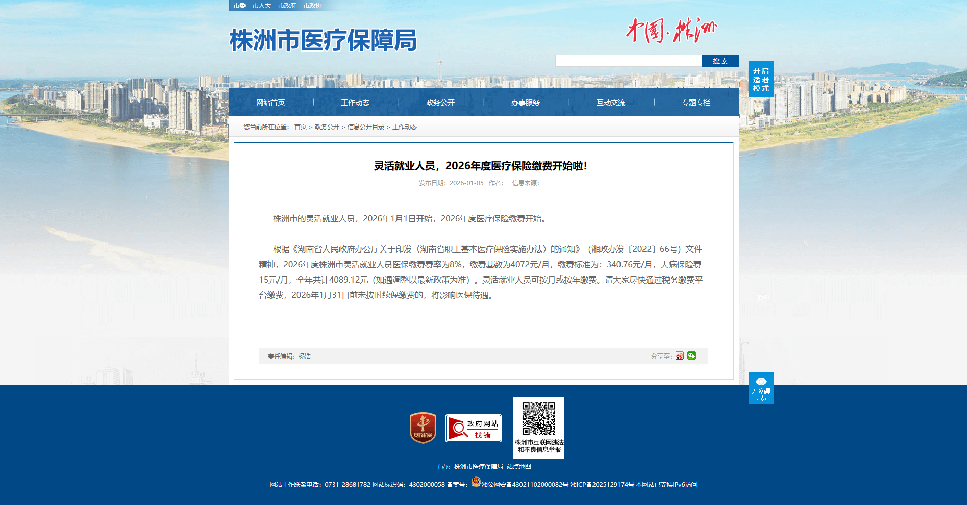 株洲市的灵活就业人员,2026年1月1日开始,2026年度医疗保险缴费开始。