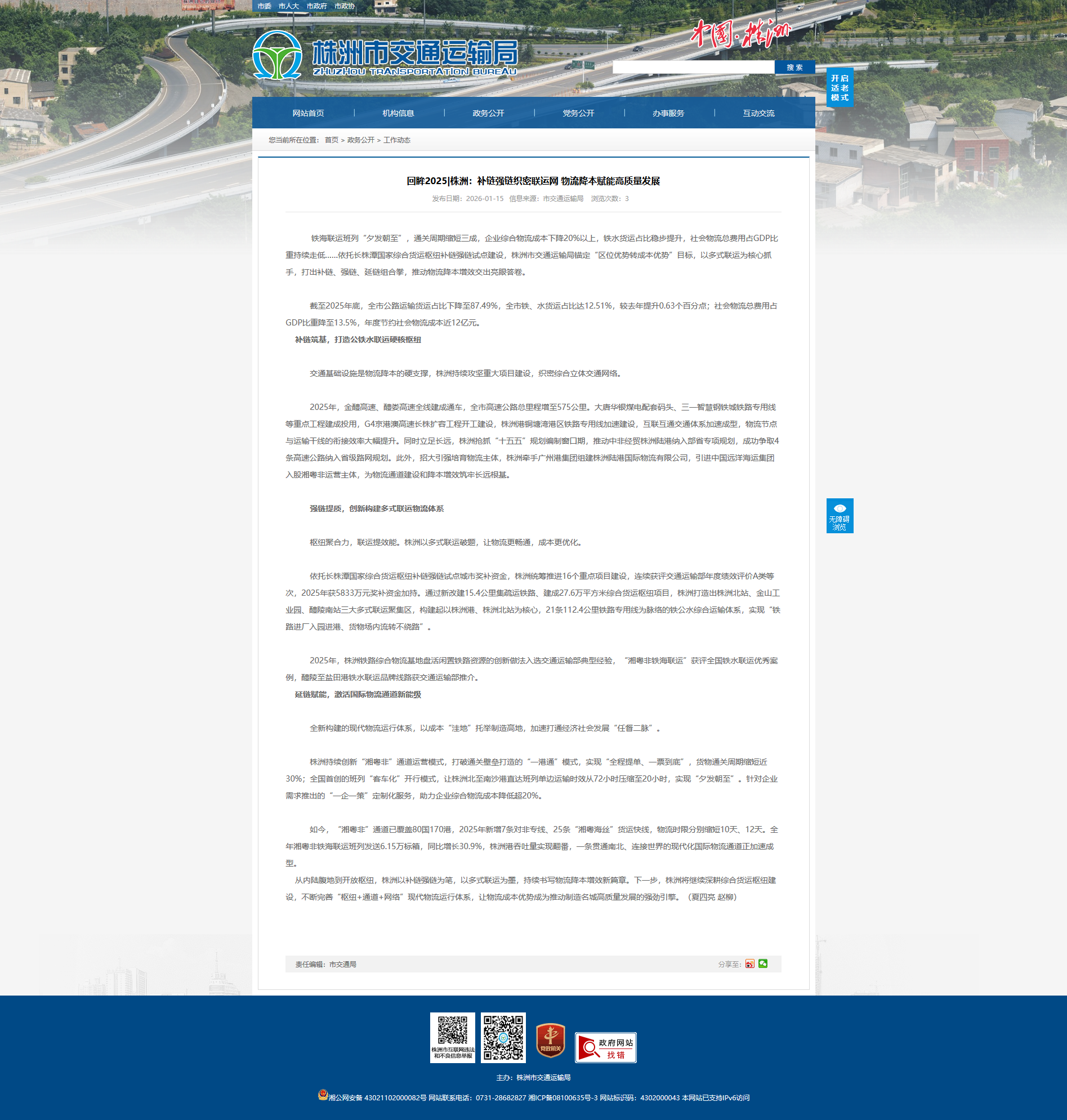 交通基础设施是物流降本的硬支撑,株洲持续攻坚重大项目建设,织密综合立体交通网络。