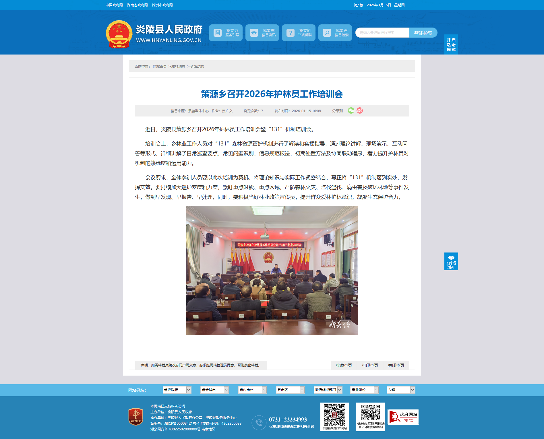 近日,炎陵县策源乡召开2026年护林员工作培训会暨“131”机制培训会。