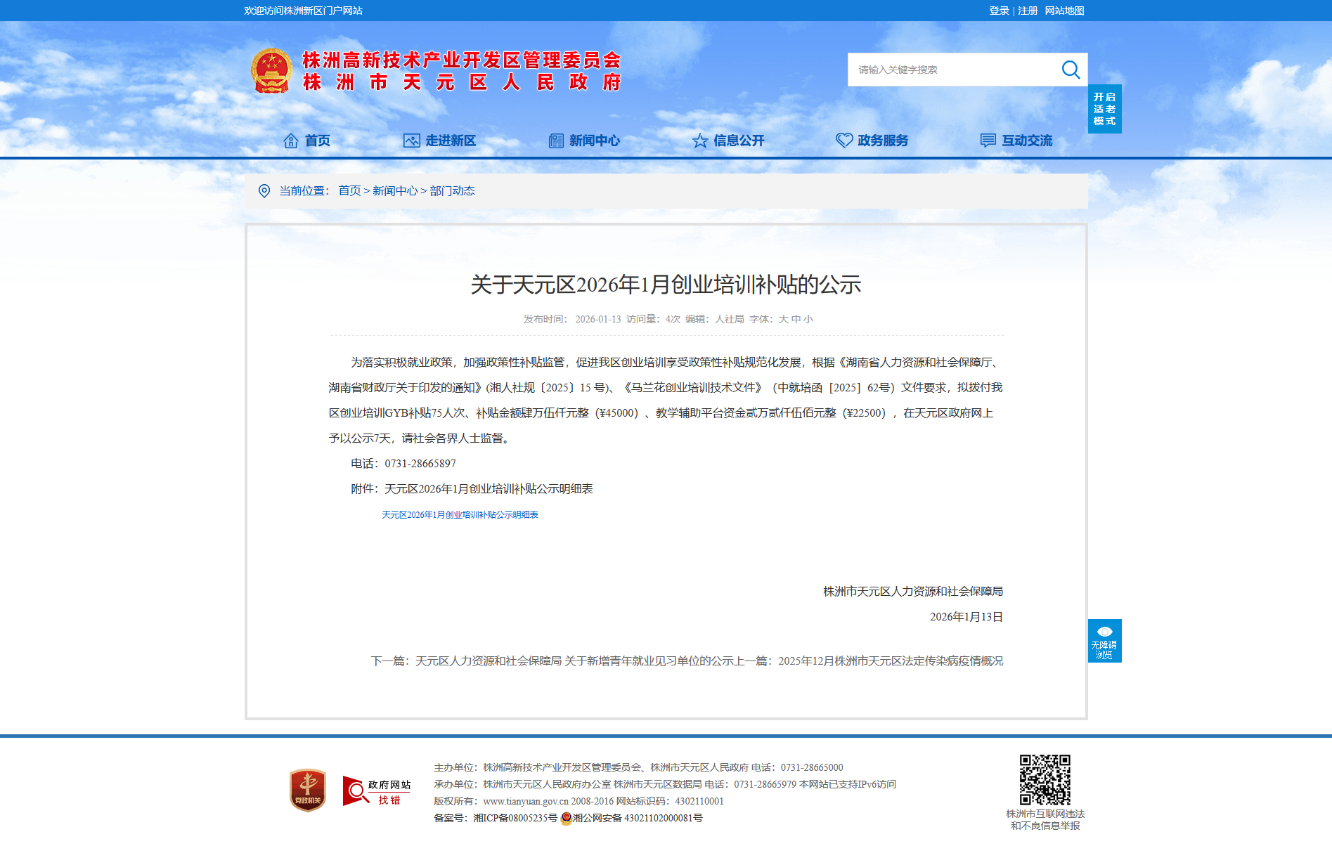 时间:2026-01-13 11:15:26 来源: 株洲市天元区人民政府 来源截图