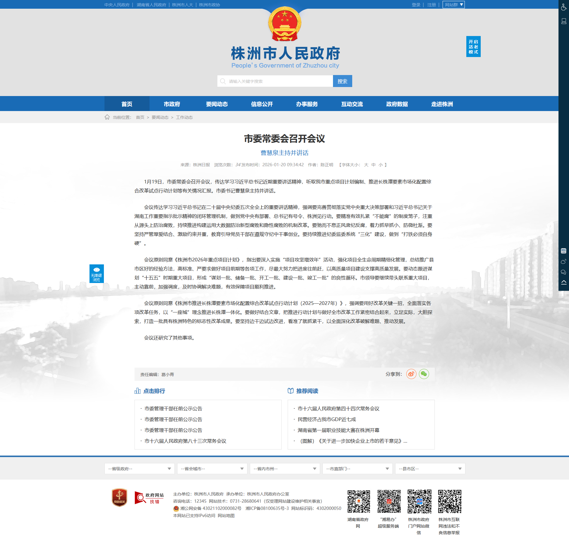 会议原则同意《株洲市2026年重点项目计划》,指出要深入实施“项目攻坚增效年”活动,强化项目全生命周期精细化管理,总结推广县市区好的经验方法,高标准、严要求做好项目前期等各项工作,尽最大努力把进度往前赶,以高质量项目建设支撑高质量发展。要动态跟进谋划“十五五”时期重大项目,形成“谋划一批、储备一批、开工一批、建设一批、竣工一批”的良性循环。市领导要继续带头联系重大项目,主动靠前,加强调度,及时协调解决难题,有效保障项目顺利推进。