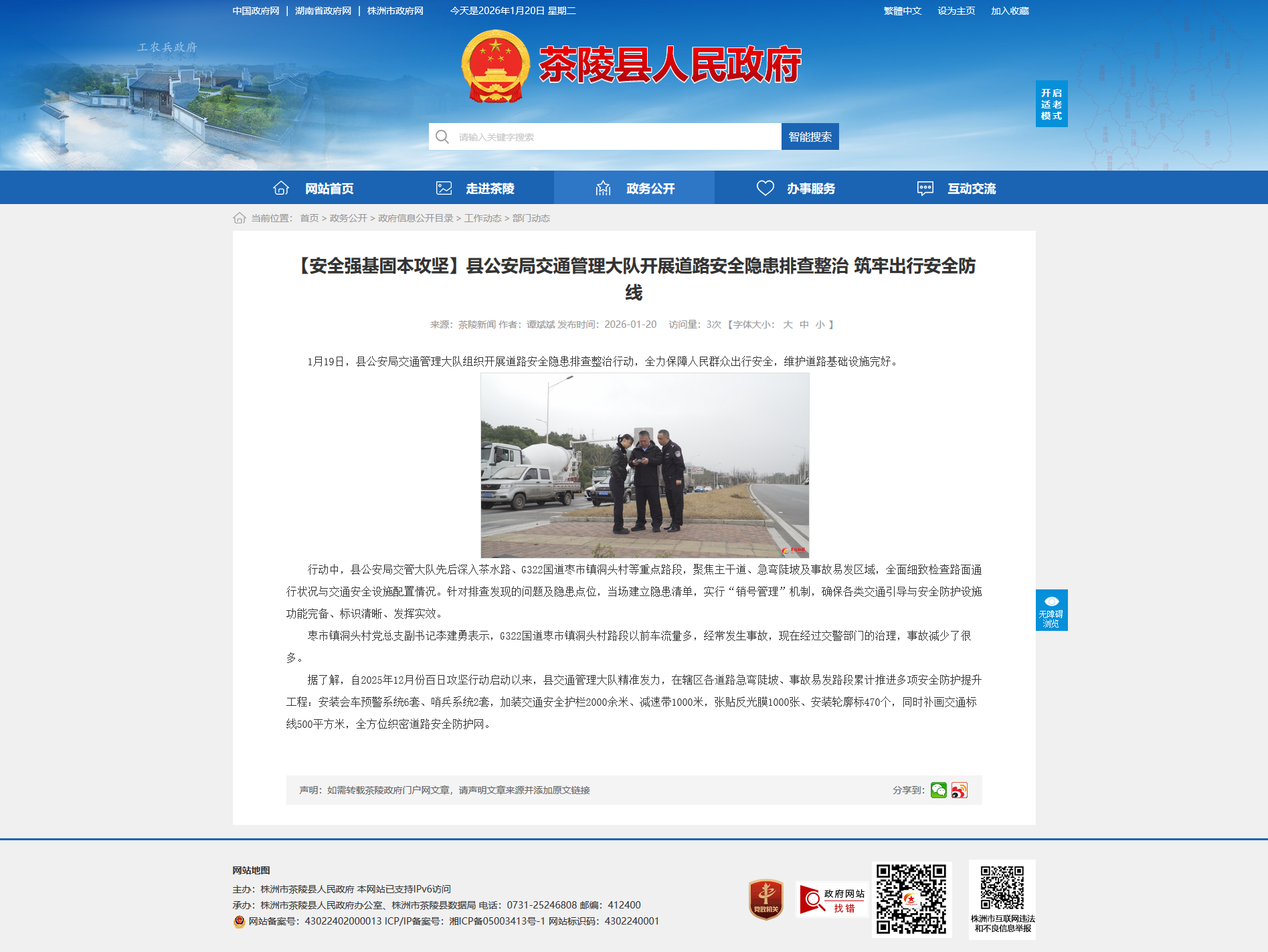 1月19日,县公安局交通管理大队组织开展道路安全隐患排查整治行动,全力保障人民群众出行安全,维护道路基础设施完好。