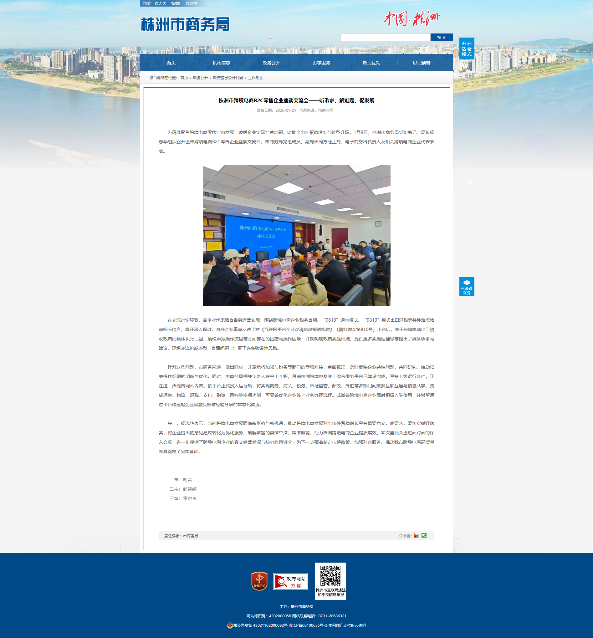 针对这些问题,市商务局逐一做出回应,并表示将加强与税务等部门的专项对接,全面梳理、及时反映企业共性问题,共同研究、推动相关操作细则的明晰与优化。同时,市商务局相关负责人在会上介绍,目前株洲跨境电商线上综合服务平台已建设完成,具备上线运行条件,正在进一步完善网站内容。该平台正式投入运行后,将实现商务、海关、税务、市场监管、邮政、外汇等多部门间数据互联互通与信息共享,集成通关、物流、退税、支付、融资、风控等多项功能,可显著优化企业线上业务办理流程。诚邀各跨境电商企业届时积极入驻使用,并希望通过平台构建起企业问题反馈与经验分享的常态化渠道。