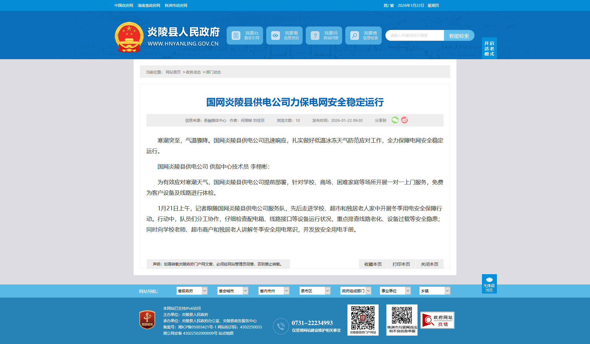 寒潮突至,气温骤降。国网炎陵县供电公司迅速响应,扎实做好低温冰冻天气防范应对工作,全力保障电网安全稳定运行。